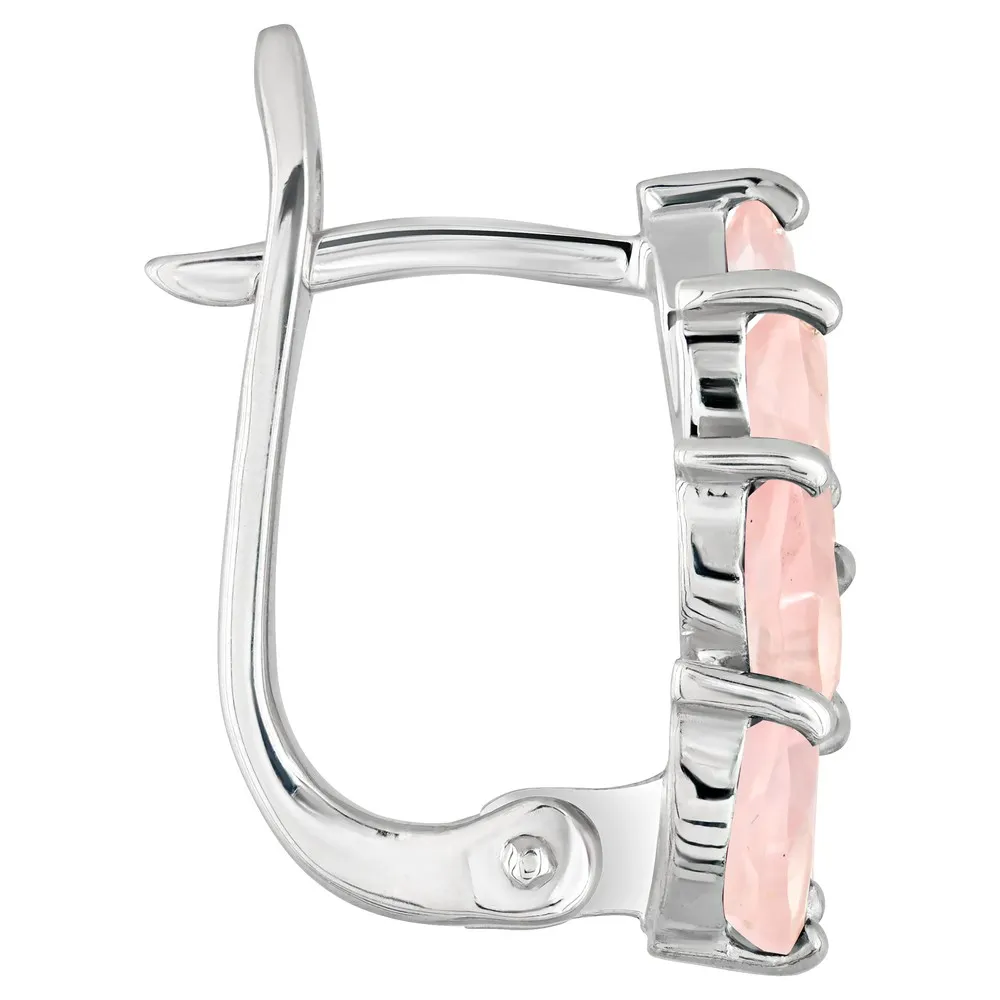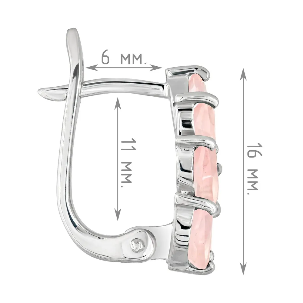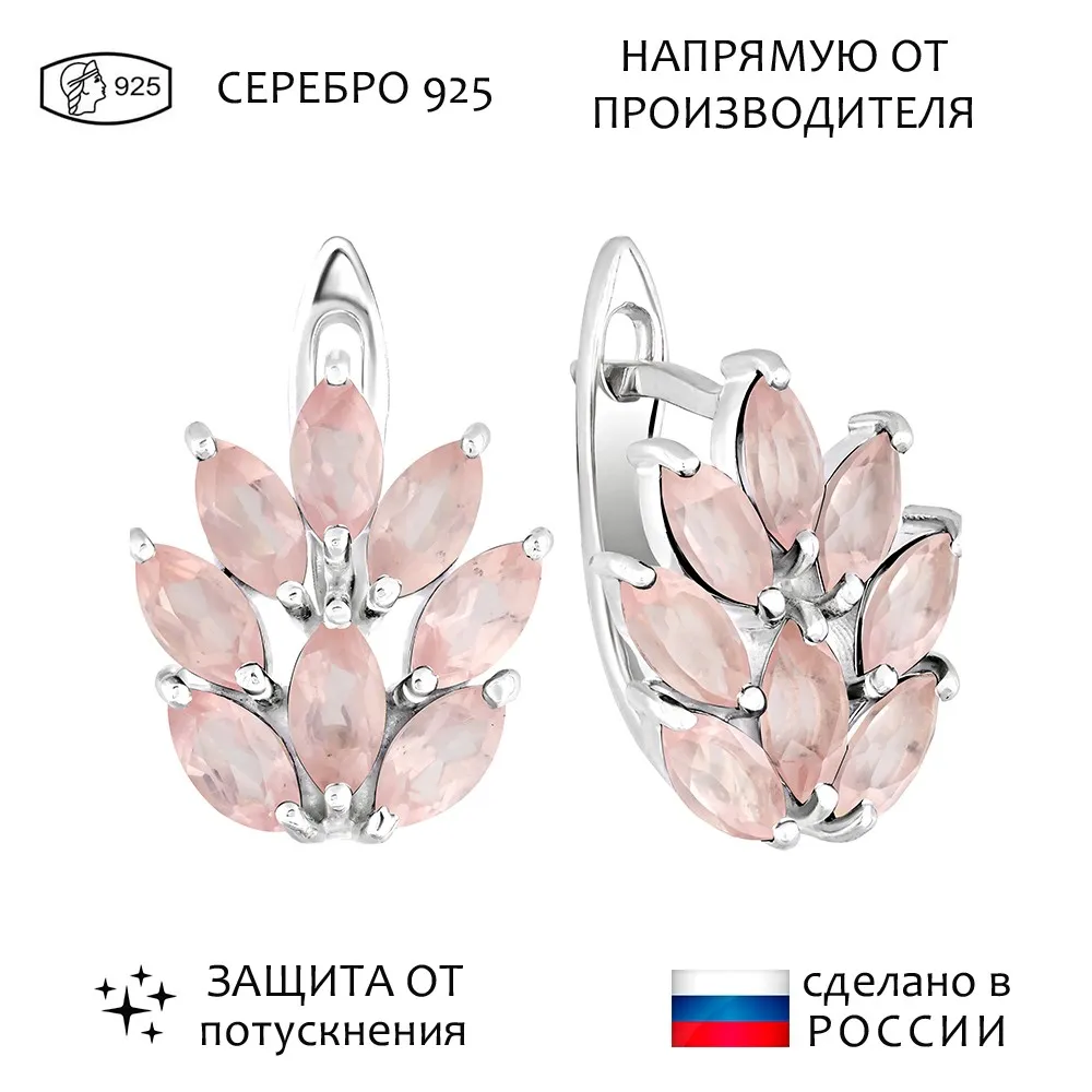 Серебряные серьги с натуральным розовым кварцем - коллекция Искра / Без покрытия.