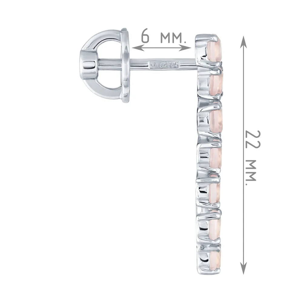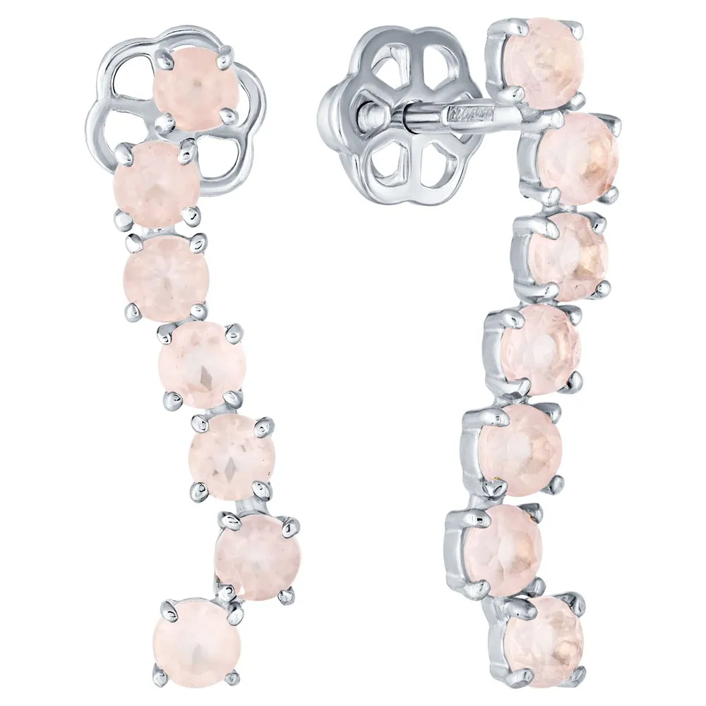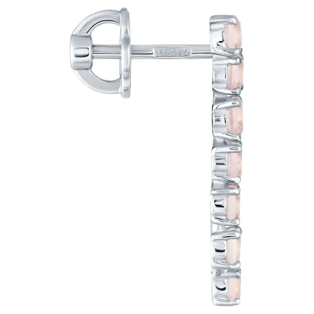 Серебряные серьги с натуральным розовым кварцем - коллекция Волна / Чистое Серебро.