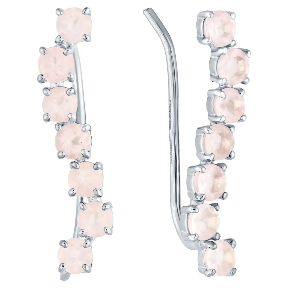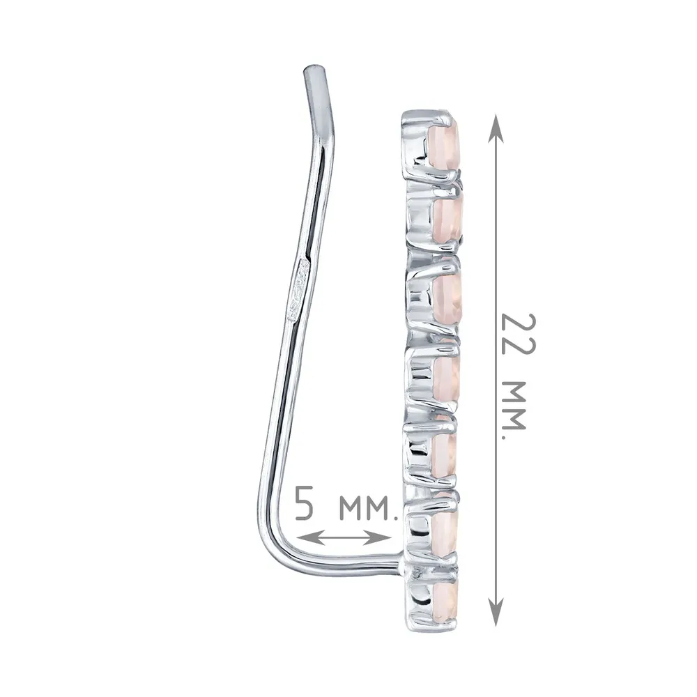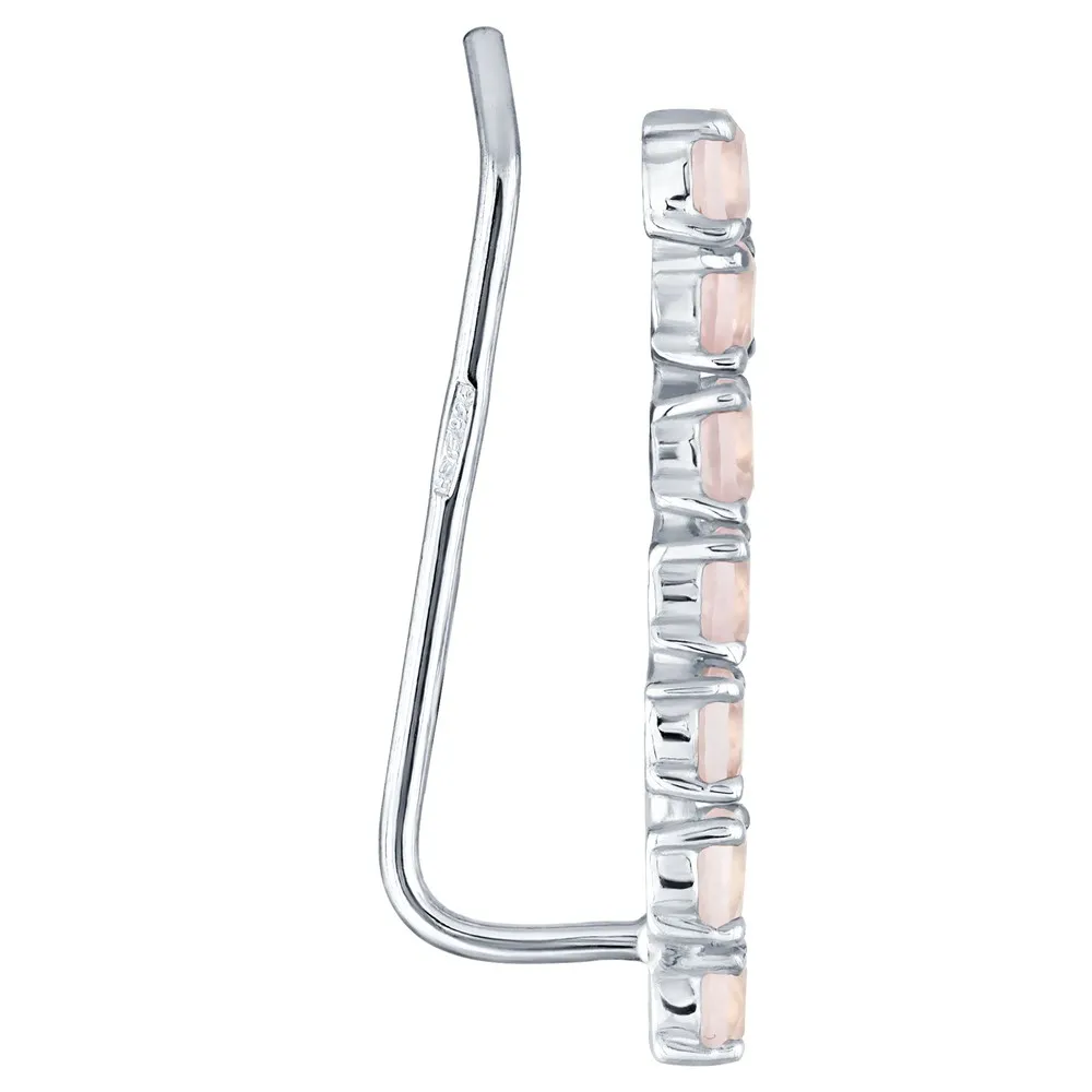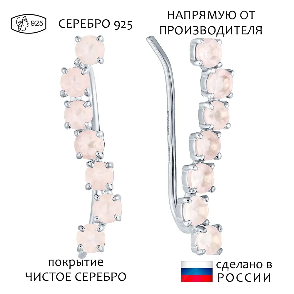 Серебряные серьги каффы с натуральным розовым кварцем - коллекция Волна / Чистое Серебро.