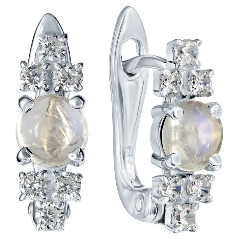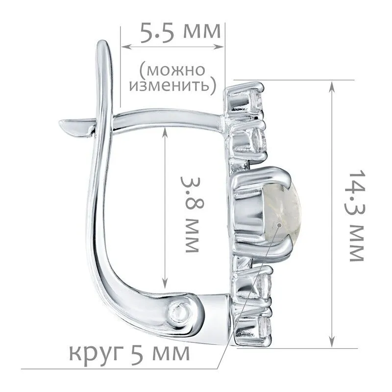 Серебряные серьги с натуральным лунным камнем - коллекция Нова / покрытие Чистое Серебро.Средний вес украшения с камнями 2.62 гр.Месторождение(я): Лунный камень (Мадагаскар).Ювелирные вставки:Лунный камень (Натуральный) круг 5 мм., средний вес: 0.59 карат.Белый Нанокристалл круг 2 мм., средний вес: 0.06 карат.Все изделия собственного производства и имеют гарантию 12 месяцев. Арт. 8720AG . Лунный камень – удивительный по красоте минерал, который всегда считался подарком самой Луны! Он успокаивает владельца и способен избавить его от груза негатива. Особенно подходит женщинам, так как усиливает природное очарование. Считается, что украшения с этим минералом привлекают настоящую любовь.