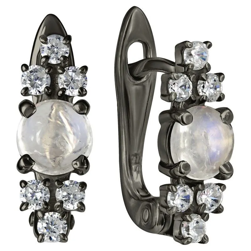 Серебряные серьги с натуральным лунным камнем - коллекция Нова / покрытие Черный Родий.Средний вес украшения с камнями 2.59 гр.Месторождение(я): Лунный камень (Мадагаскар).Ювелирные вставки:Лунный камень (Натуральный) круг 5 мм., средний вес: 0.59 карат.Белый Нанокристалл круг 2 мм., средний вес: 0.06 карат.Все изделия собственного производства и имеют гарантию 12 месяцев. Арт. 8720BR . Лунный камень – удивительный по красоте минерал, который всегда считался подарком самой Луны! Он успокаивает владельца и способен избавить его от груза негатива. Особенно подходит женщинам, так как усиливает природное очарование. Считается, что украшения с этим минералом привлекают настоящую любовь.