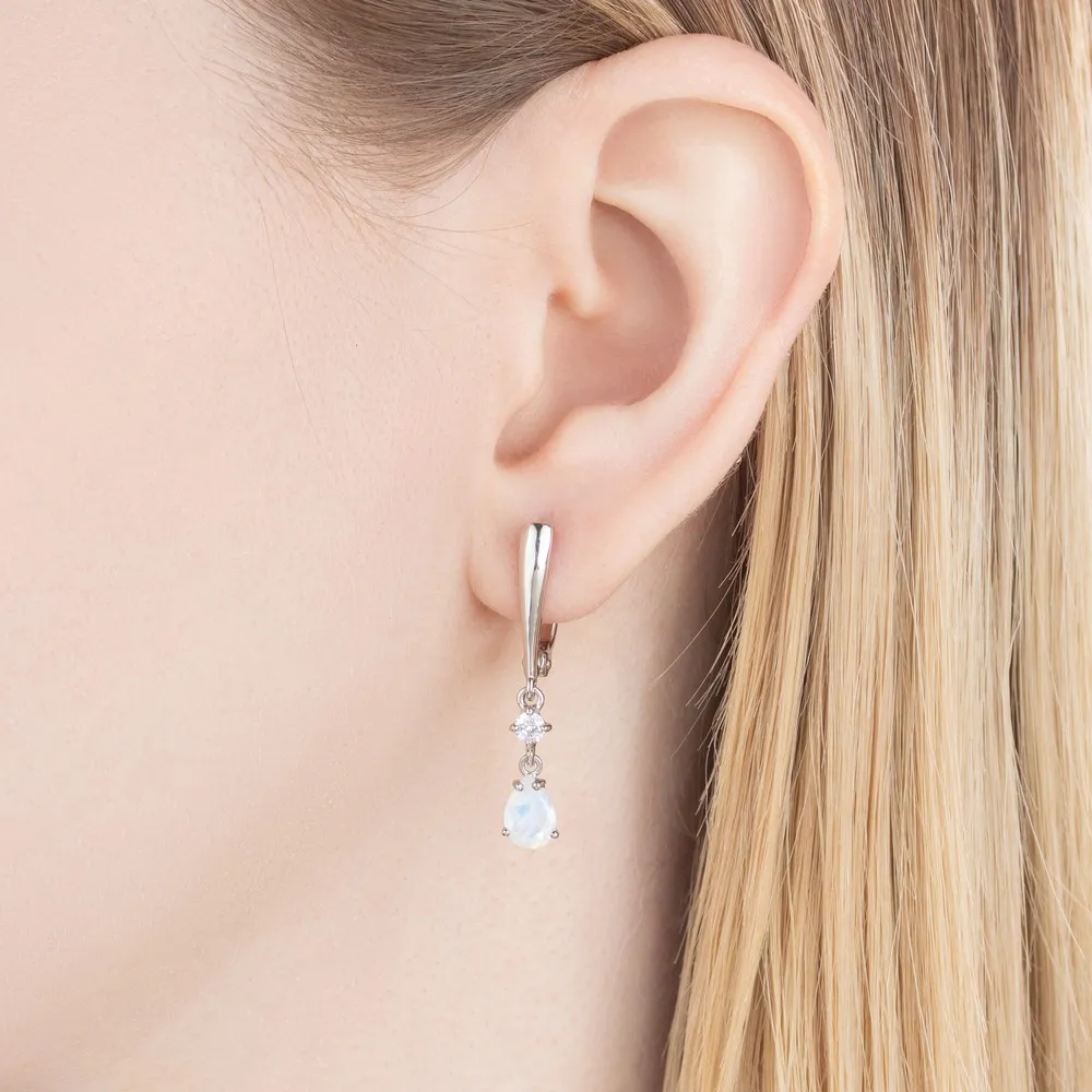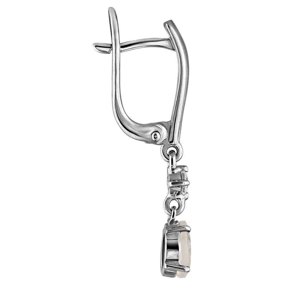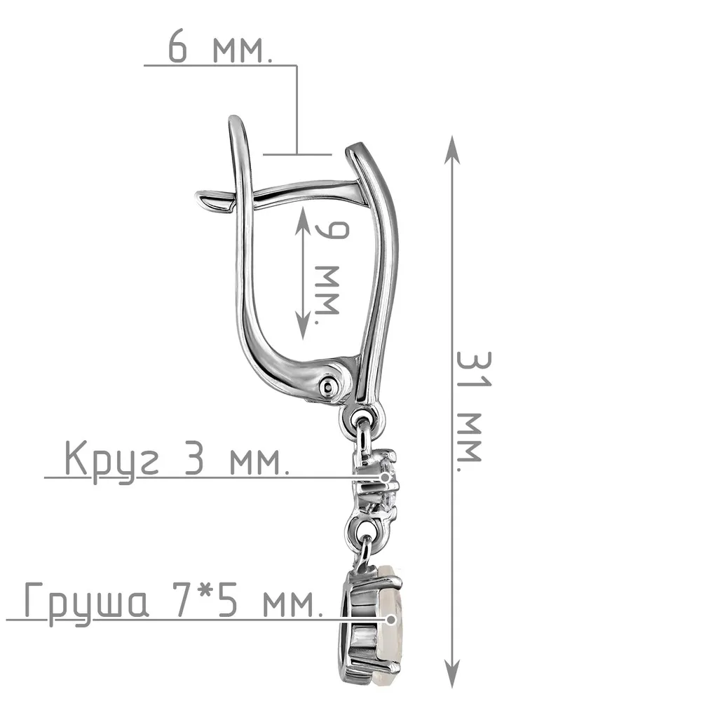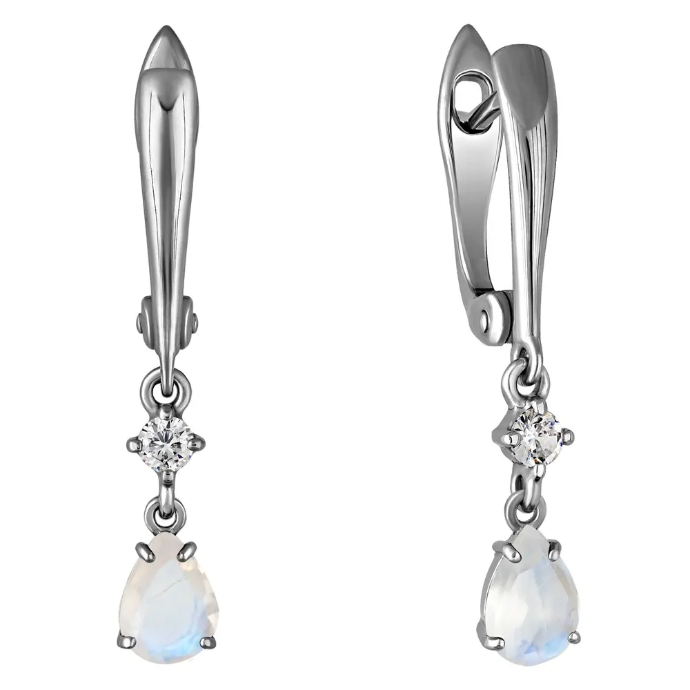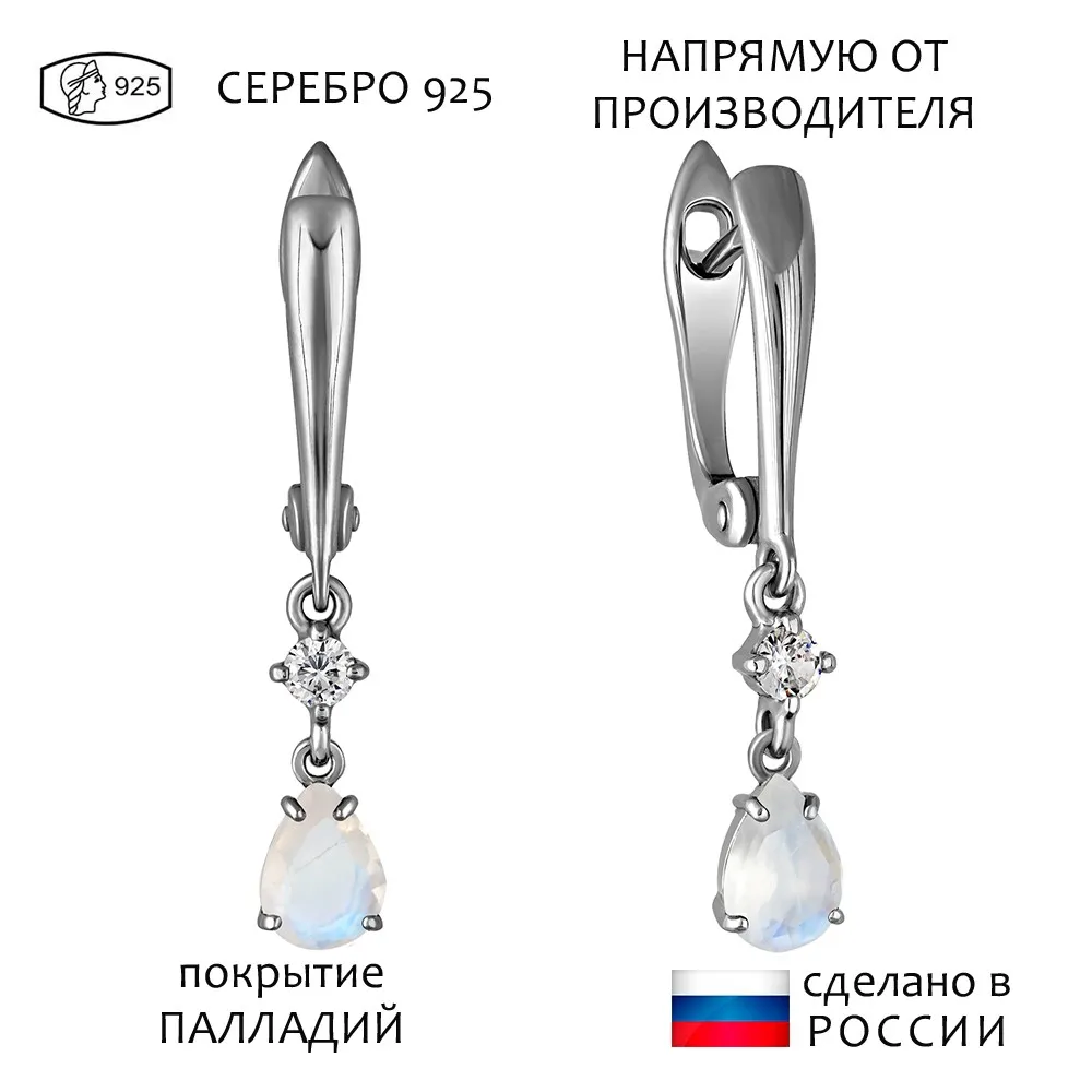 Серебряные серьги с натуральным лунным камнем - коллекция Алсу (малая) / Палладий.