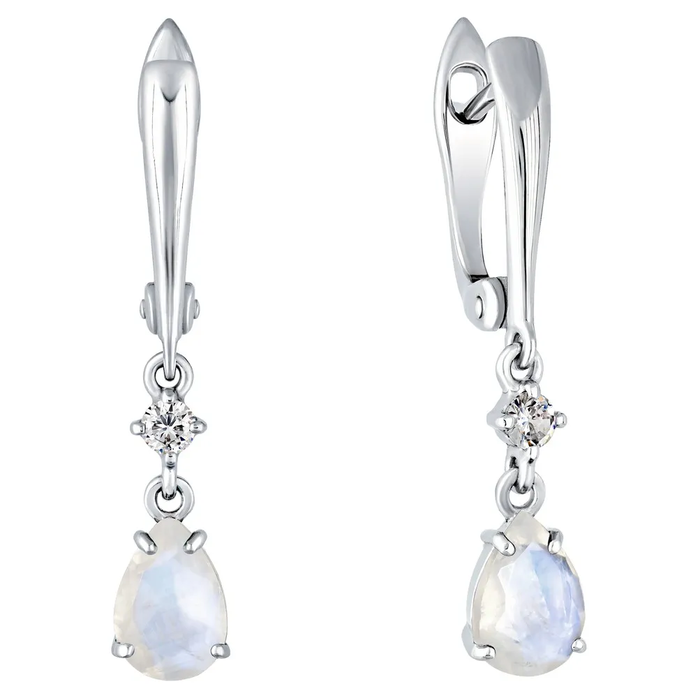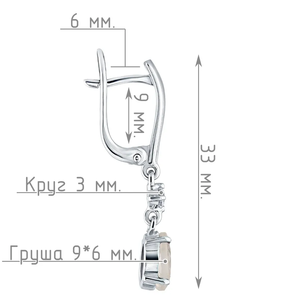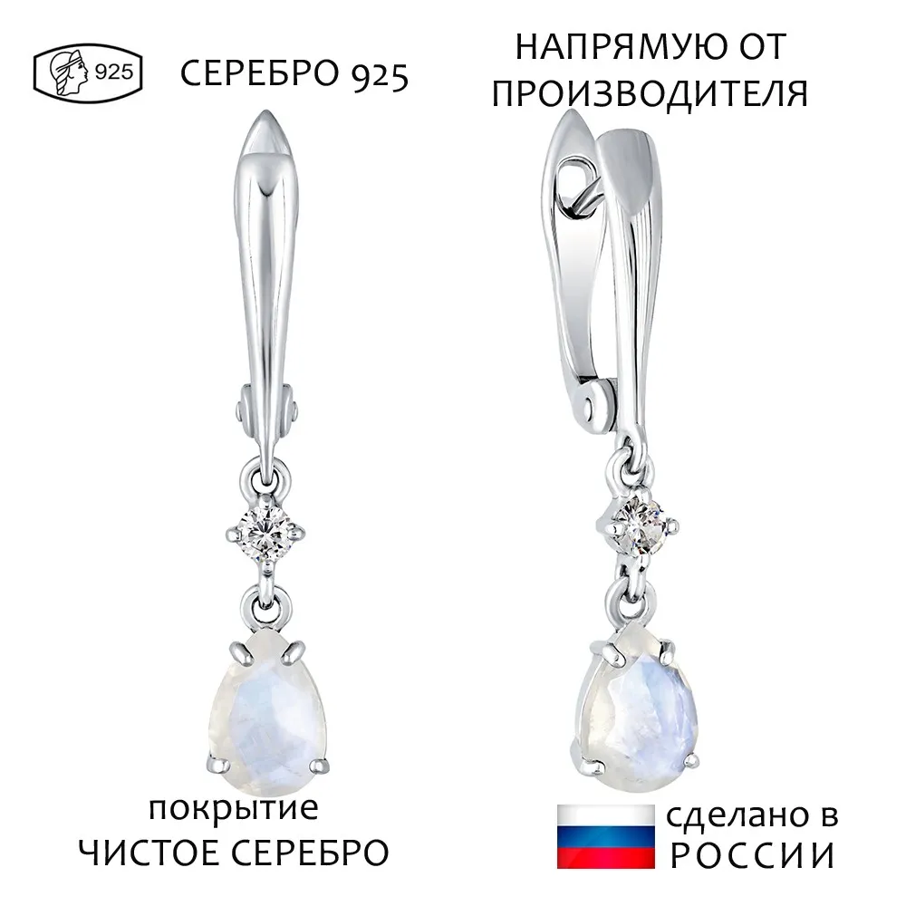 Серебряные серьги с натуральным лунным камнем - коллекция Алсу (большая) / Чистое Серебро.