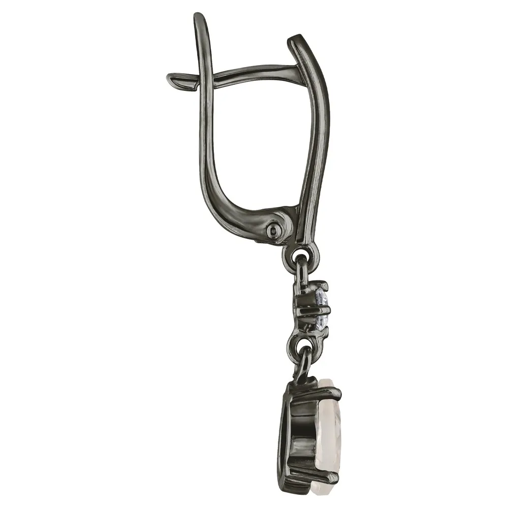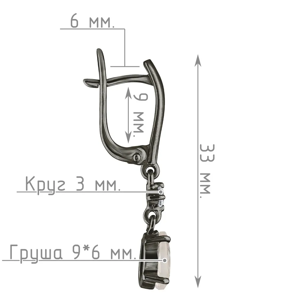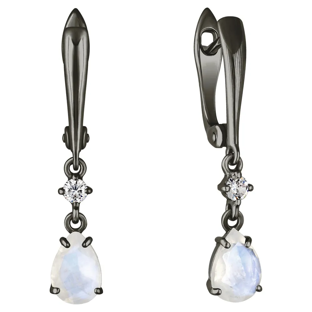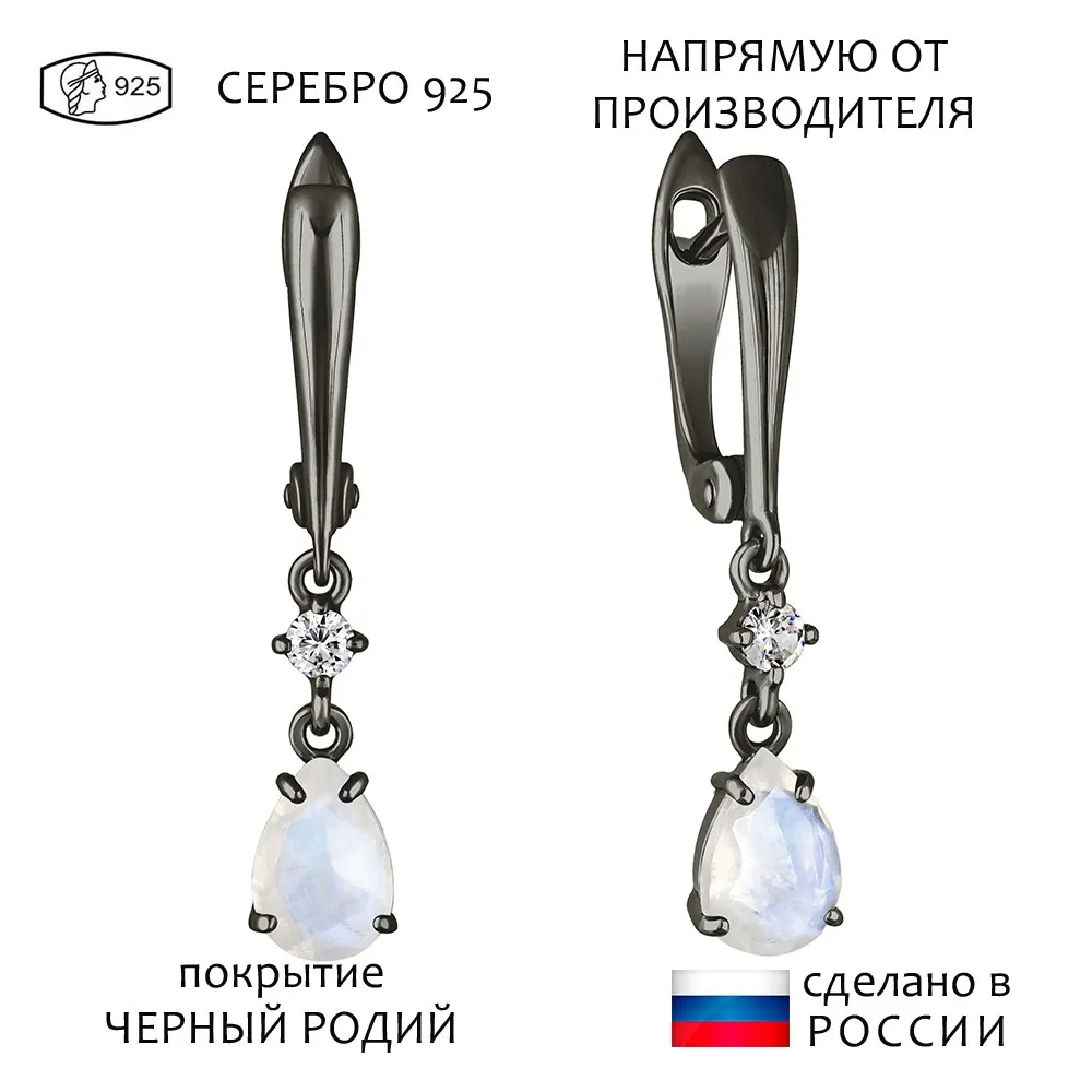 Серебряные серьги с натуральным лунным камнем - коллекция Алсу (большая) / Черный Родий.