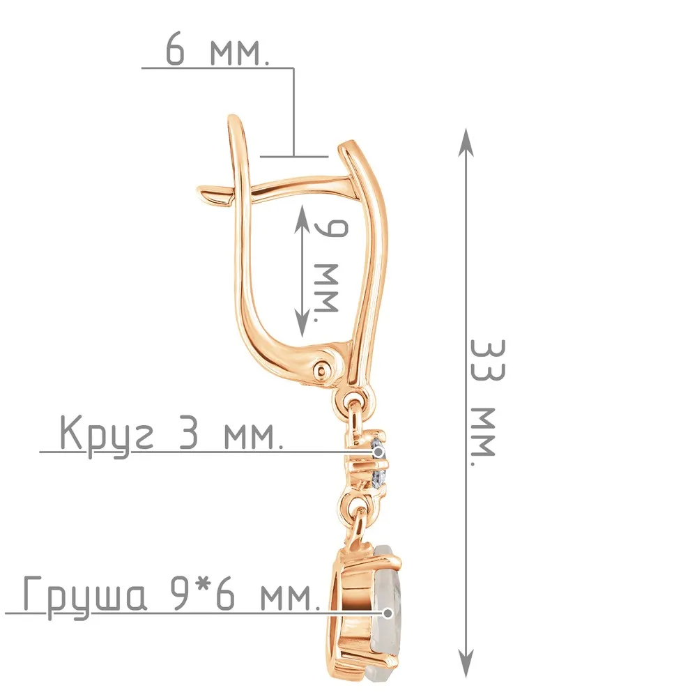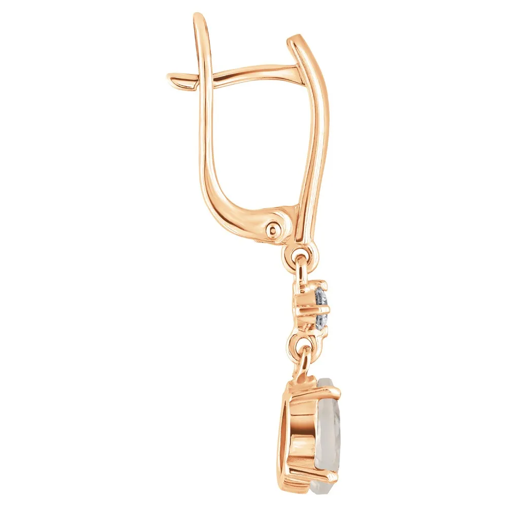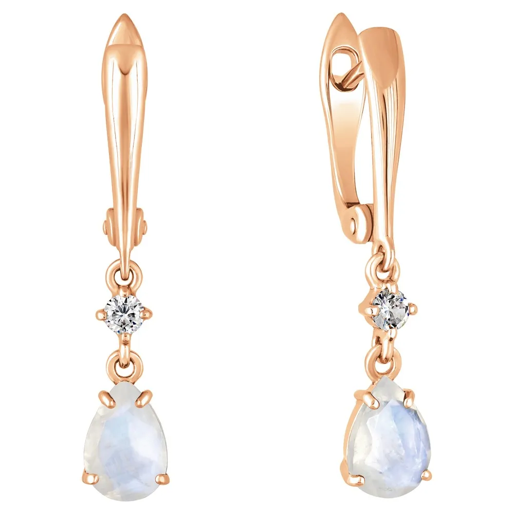Серебряные серьги с натуральным лунным камнем - коллекция Алсу (большая) / Красное золото.