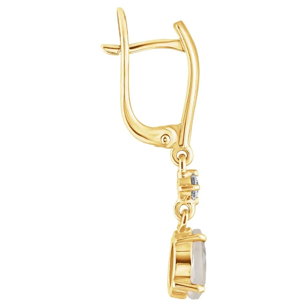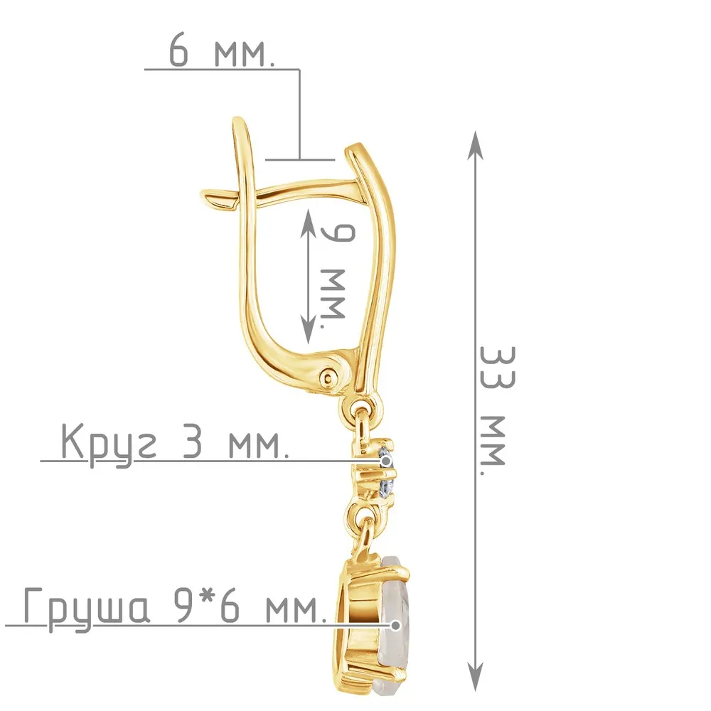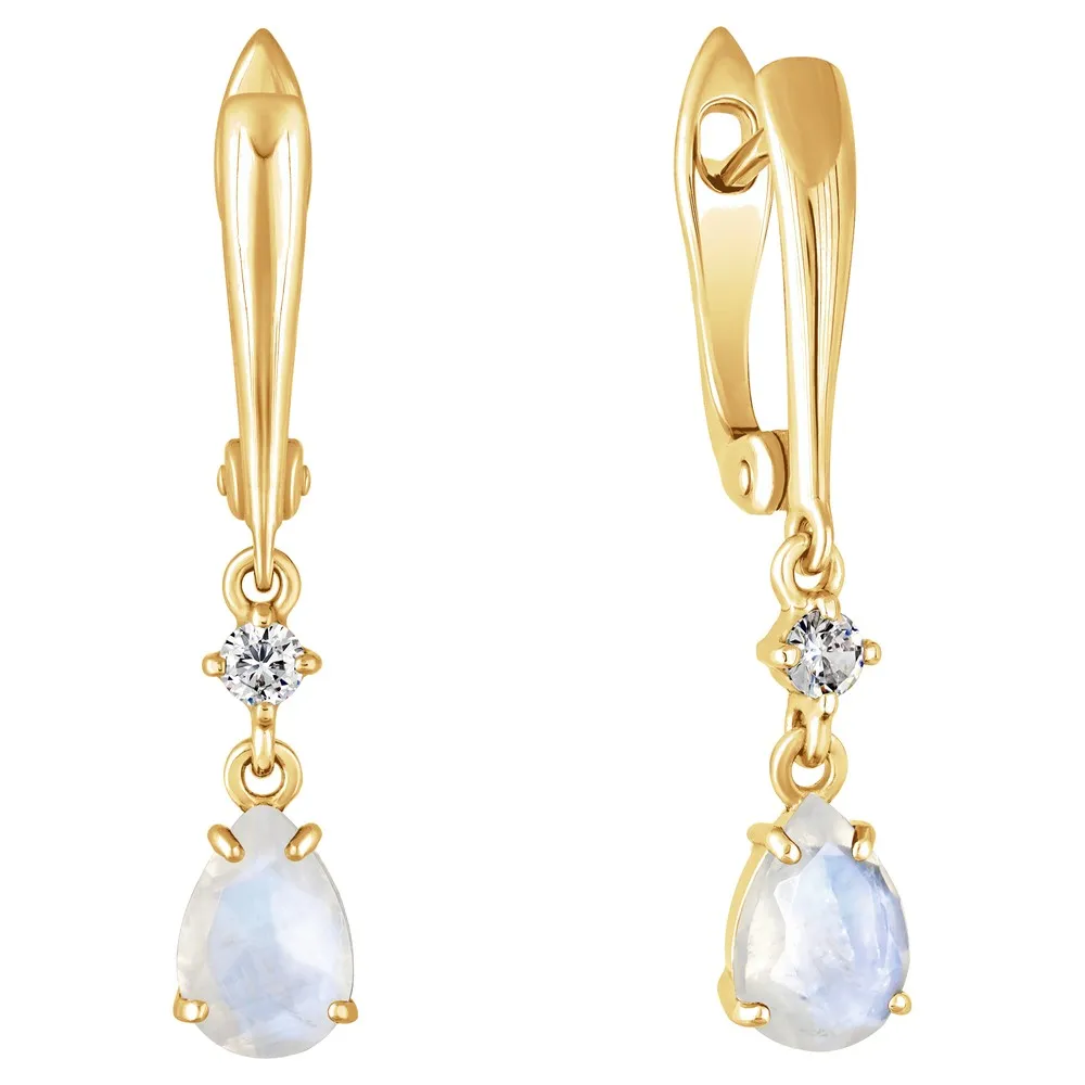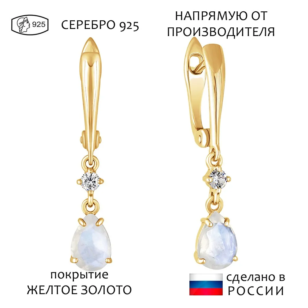 Серебряные серьги с натуральным лунным камнем - коллекция Алсу (большая) / Желтое Золото.