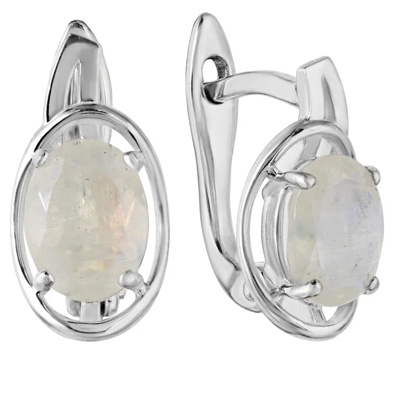 Серебряные серьги с натуральным лунным камнем - коллекция Фрейя. Средний вес изделия с камнями 2.88 гр. Месторождение: Лунный камень (Мадагаскар)]; Лунный камень (Натуральный) овал 6*8 мм., средний вес: 1.24 карат. Все изделия собственного производства. Гарантия 12 месяцев.Арт. 8150. Лунный камень – удивительный по красоте минерал, который всегда считался подарком самой Луны! Он успокаивает владельца и способен избавить его от груза негатива. Особенно подходит женщинам, так как усиливает природное очарование. Считается, что украшения с этим минералом привлекают настоящую любовь.
