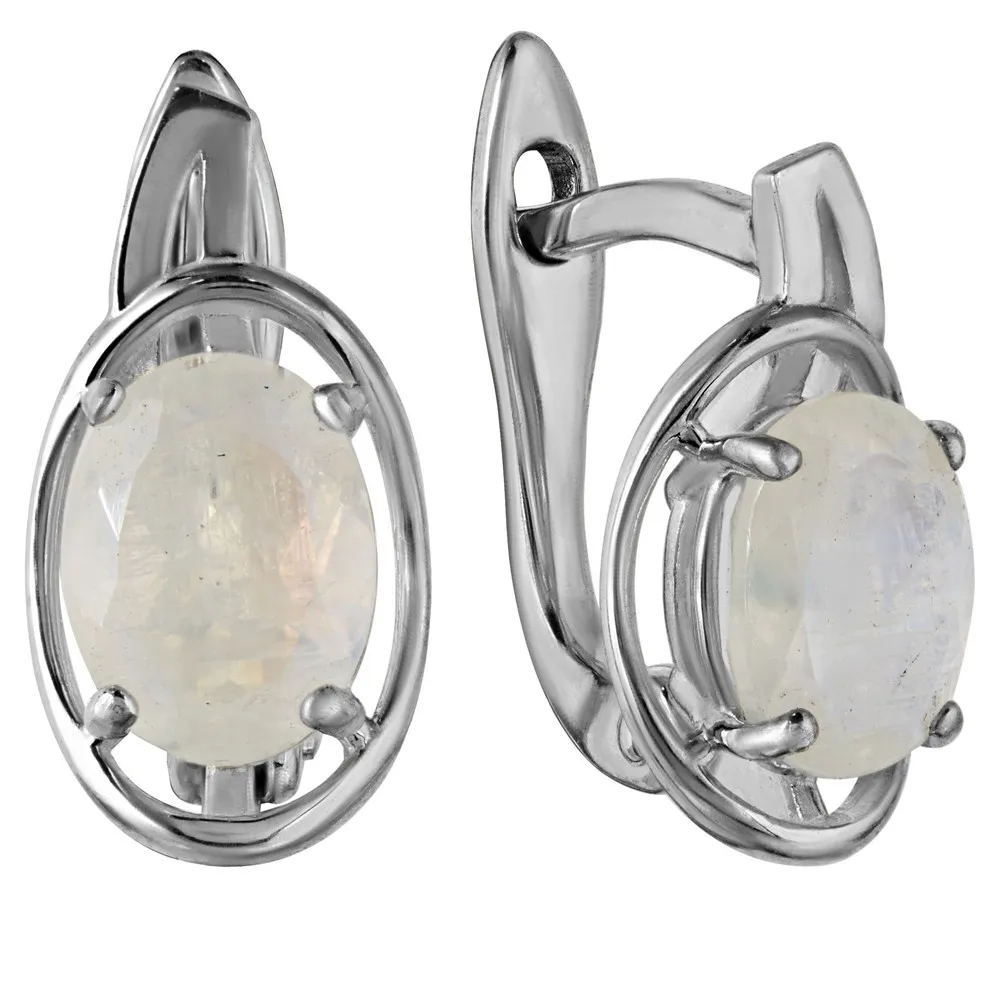 Серебряные серьги с натуральным лунным камнем - коллекция Фрейя. Средний вес изделия с камнями 2.88 гр. Месторождение: Лунный камень (Мадагаскар)]; Лунный камень (Натуральный) овал 6*8 мм., средний вес: 1.24 карат. Все изделия собственного производства. Гарантия 12 месяцев.Арт. 8150. Лунный камень – удивительный по красоте минерал, который всегда считался подарком самой Луны! Он успокаивает владельца и способен избавить его от груза негатива. Особенно подходит женщинам, так как усиливает природное очарование. Считается, что украшения с этим минералом привлекают настоящую любовь.