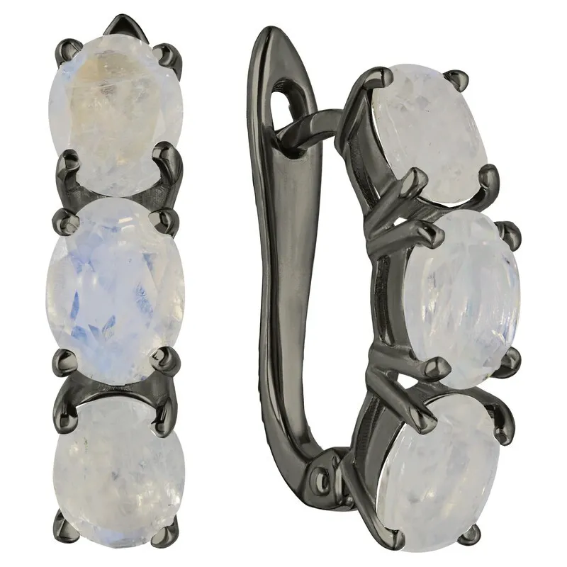 Серебряные серьги с натуральным лунным камнем - коллекция Муза, покрытие Черный Родий.