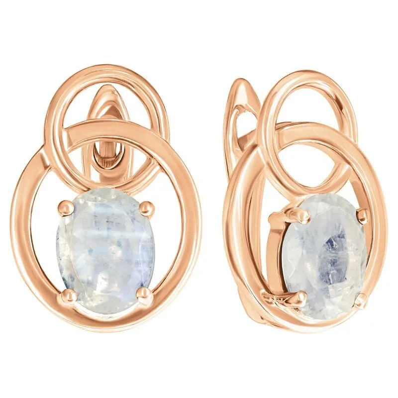 Серебряные серьги с натуральным лунным камнем - коллекция Юнона. Серебряные серьги 925 пробы с покрытием красное золото. Цвет покрытия соответствует швейцарскому цветовому стандарту NIHS -5N и цвету красного золота 585 в России. На последней фотографии мы разместили сравнительную фотографию 3 цвета золотого покрытия. Помимо предания золотого цвета Вашему изделию, тонкий слой золота защищает от окисления. Для более стойкого эффекта золочения и долговечности покрытия мы дополнительно наносим подслой палладия (Pd). Средний вес изделия с камнями 4.17 гр. Месторождение: Лунный камень (Мадагаскар). Лунный камень (Натуральный) овал 6*8 мм., средний вес: 1.07 карат. Все изделия собственного производства. Гарантия 12 месяцев.Арт. 8395. Лунный камень – удивительный по красоте минерал, который всегда считался подарком самой Луны! Он успокаивает владельца и способен избавить его от груза негатива. Особенно подходит женщинам, так как усиливает природное очарование. Считается, что украшения с этим минералом привлекают настоящую любовь.