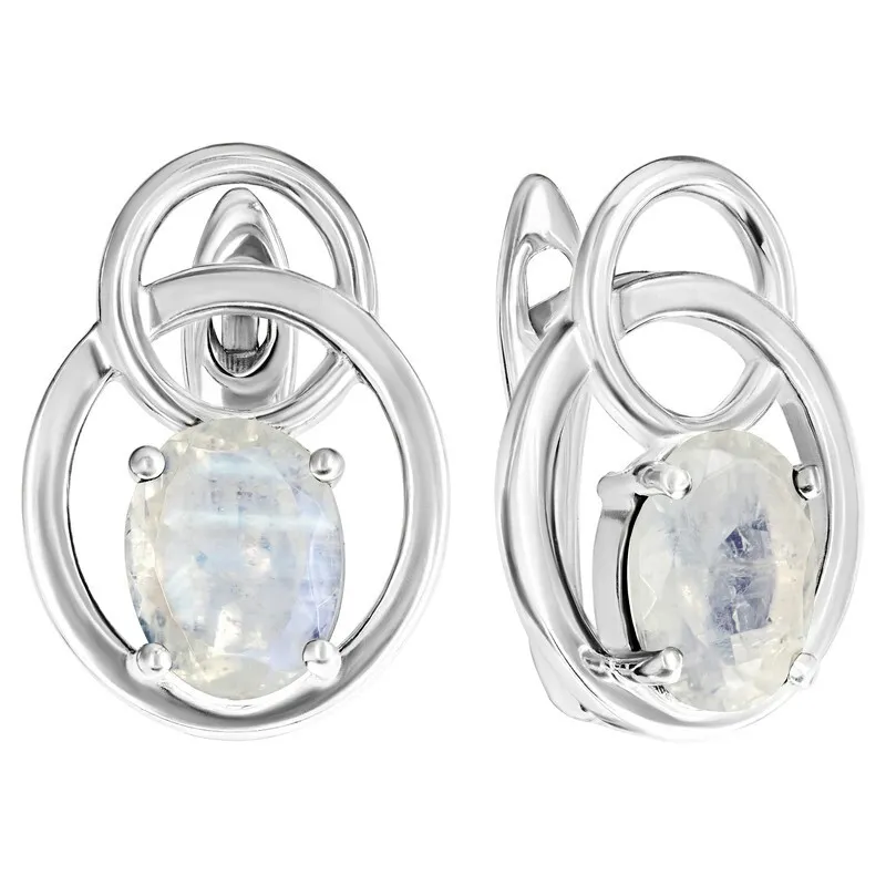 Серебряные серьги с натуральным лунным камнем - коллекция Юнона. Средний вес изделия с камнями 4.17 гр. Месторождение: Лунный камень (Мадагаскар). Лунный камень (Натуральный) овал 6*8 мм., средний вес: 1.07 карат. Все изделия собственного производства. Гарантия 12 месяцев.Арт. 8395. Лунный камень – удивительный по красоте минерал, который всегда считался подарком самой Луны! Он успокаивает владельца и способен избавить его от груза негатива. Особенно подходит женщинам, так как усиливает природное очарование. Считается, что украшения с этим минералом привлекают настоящую любовь.