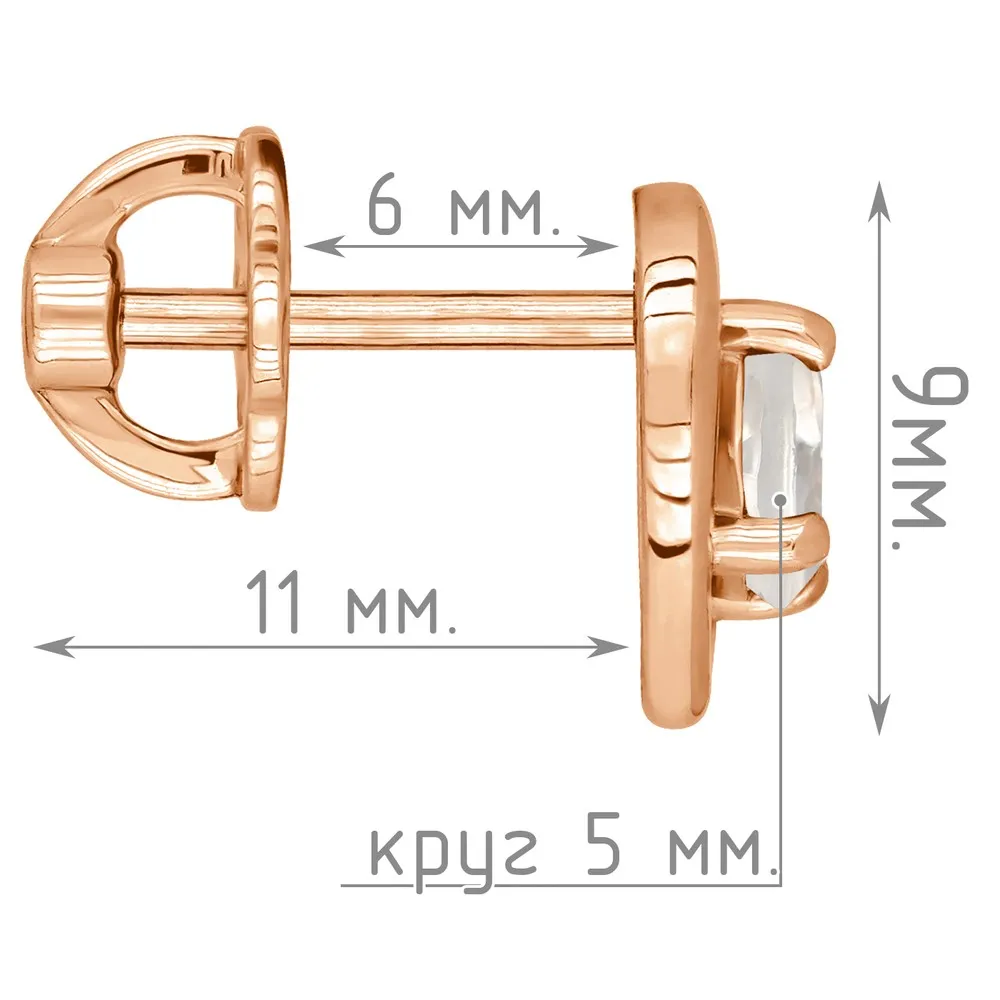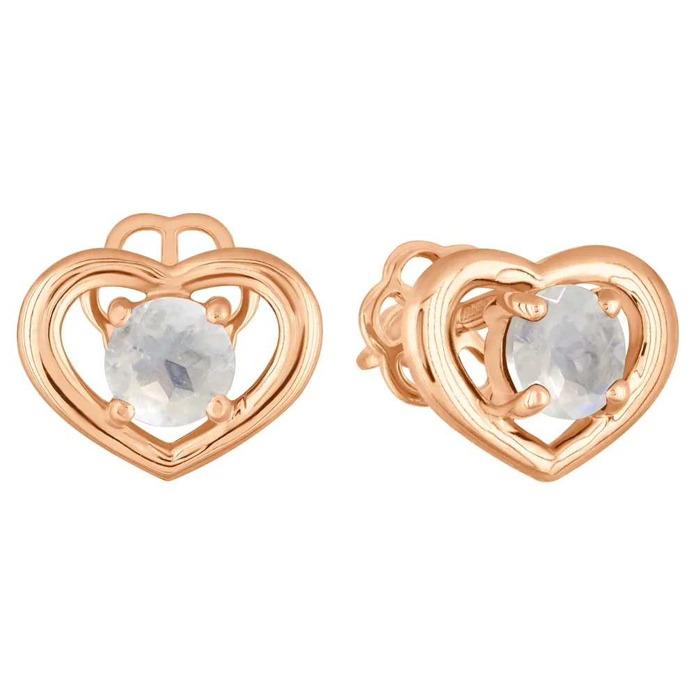 Серебряные серьги гвоздики (пусеты) с натуральным лунным камнем - Сердце / покрытие Красное золото.