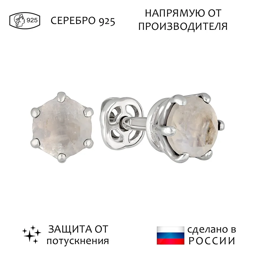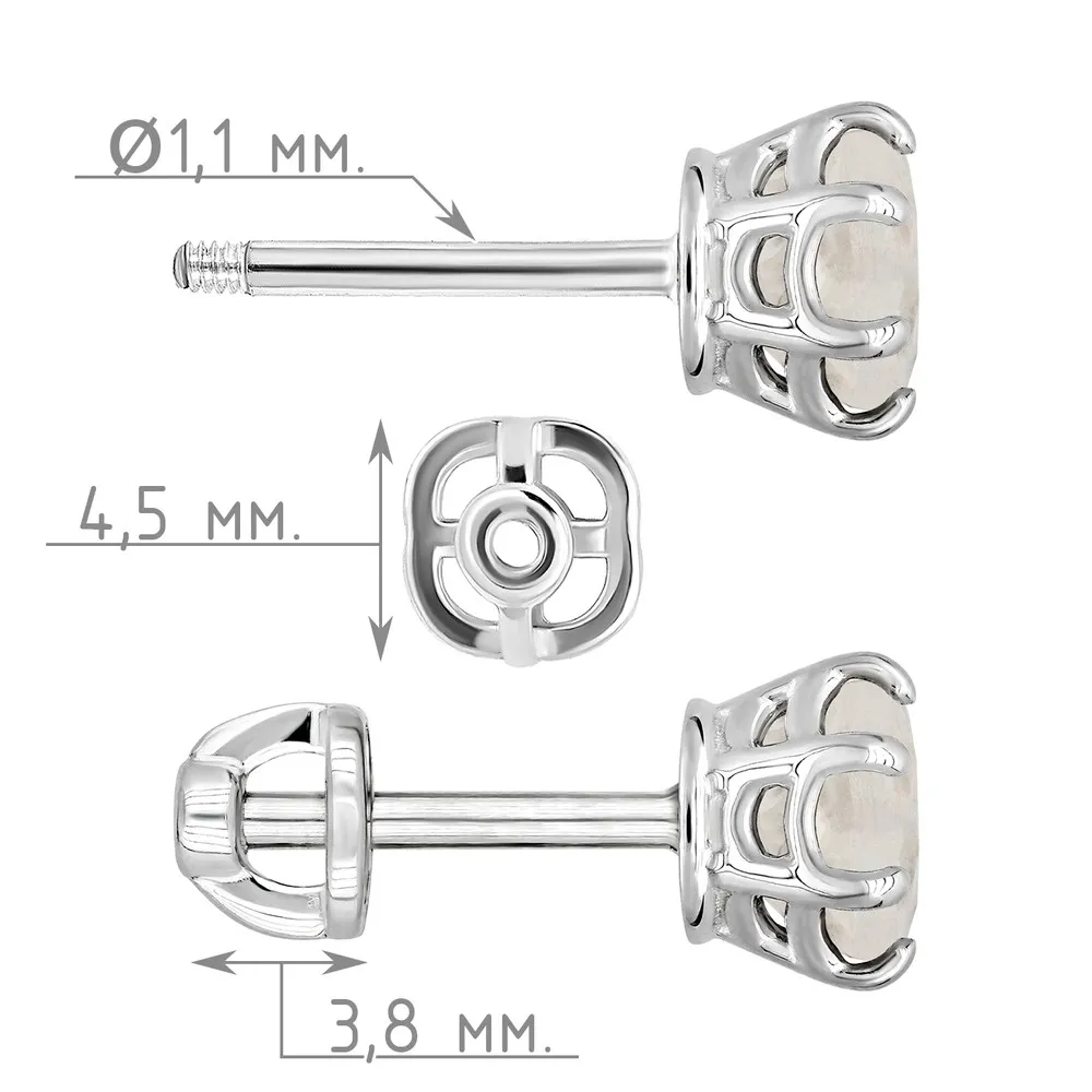 Серебряные серьги гвоздики (пусеты) с натуральным лунным камнем 5 мм. / Без покрытия.