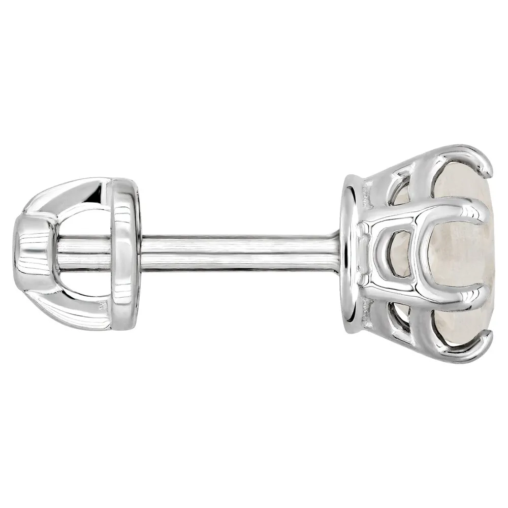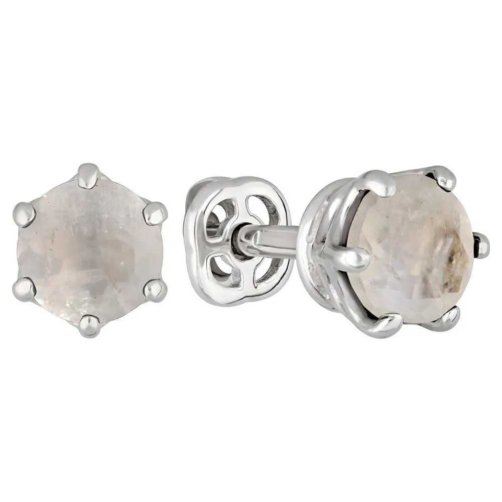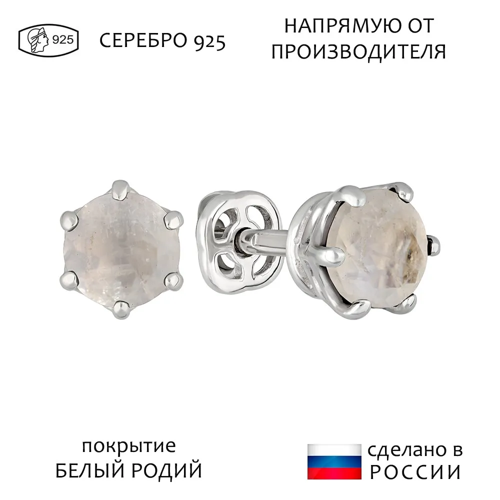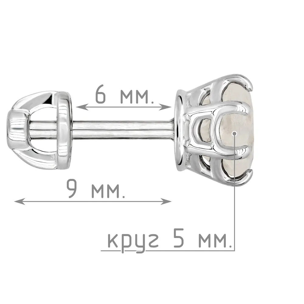 Серебряные серьги гвоздики (пусеты) с натуральным лунным камнем 5 мм. / Белый Родий.