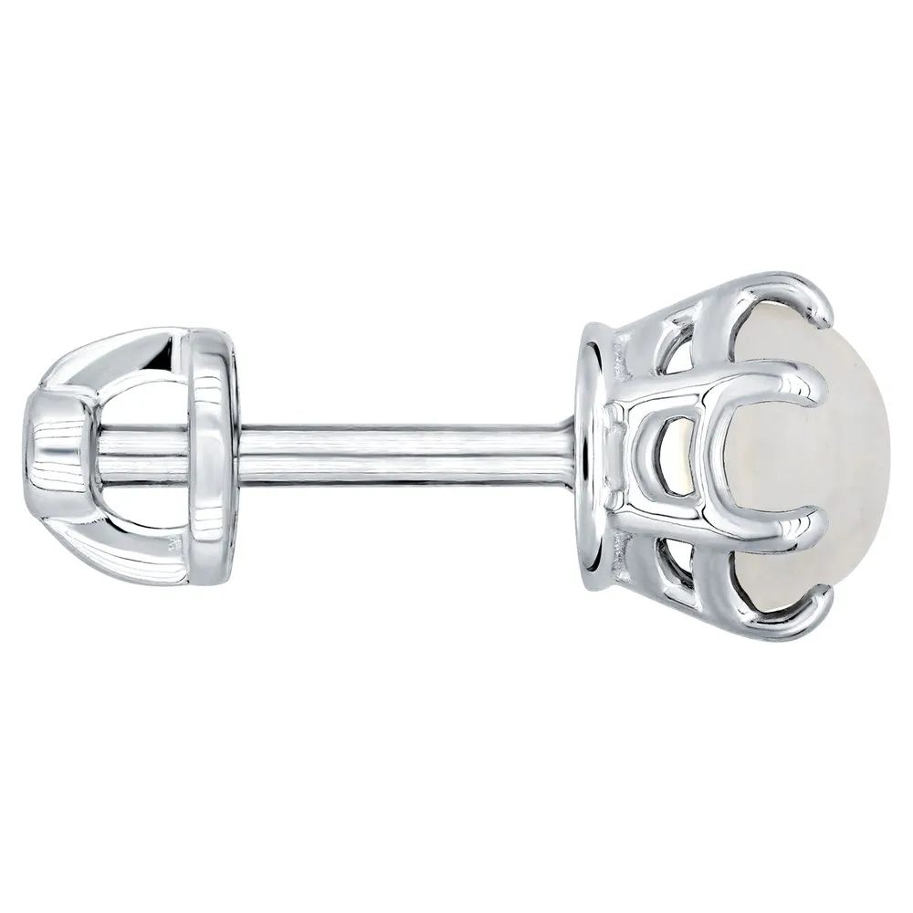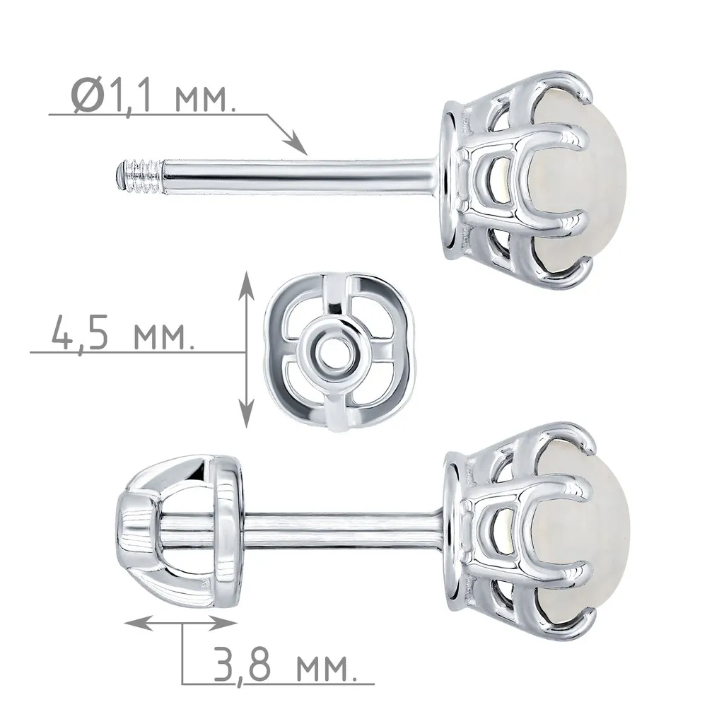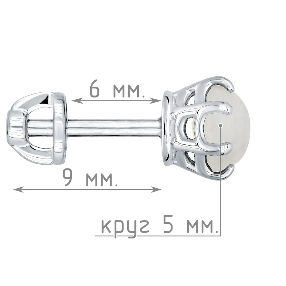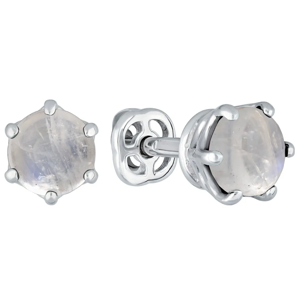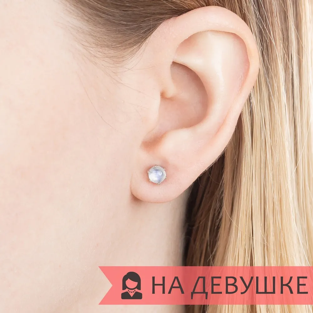 Серебряные серьги гвоздики (пусеты) с натуральным лунным камнем (каб.) 5 мм. / Чистое Серебро.