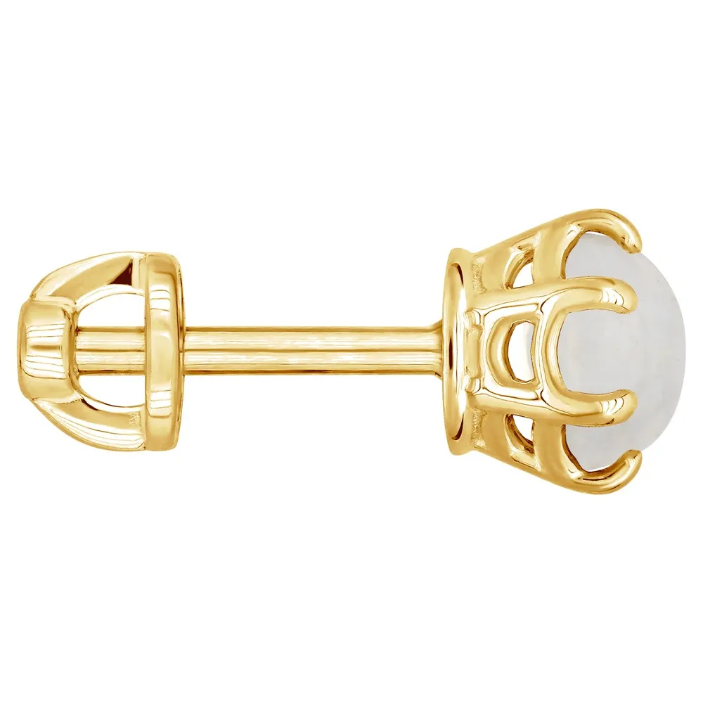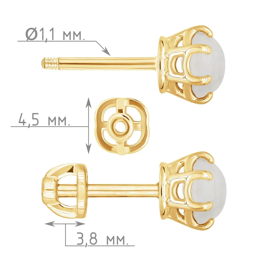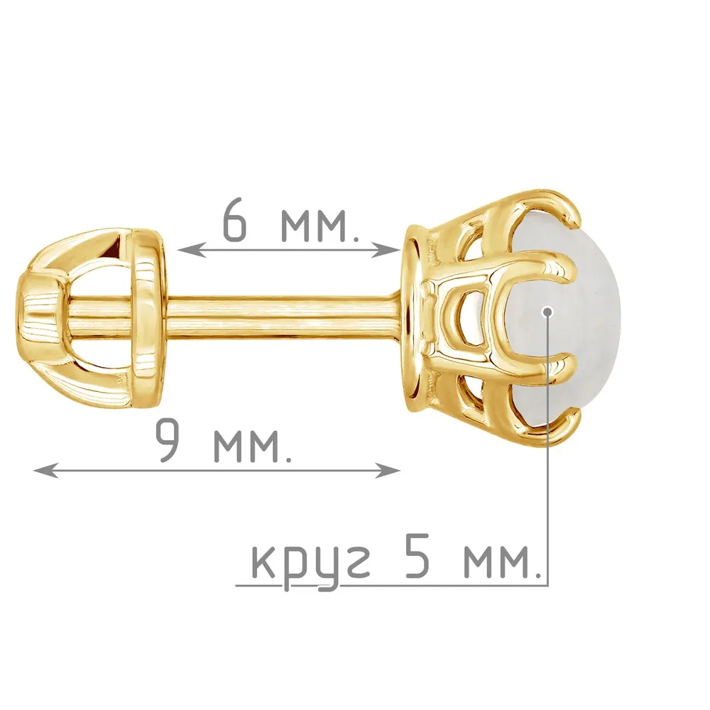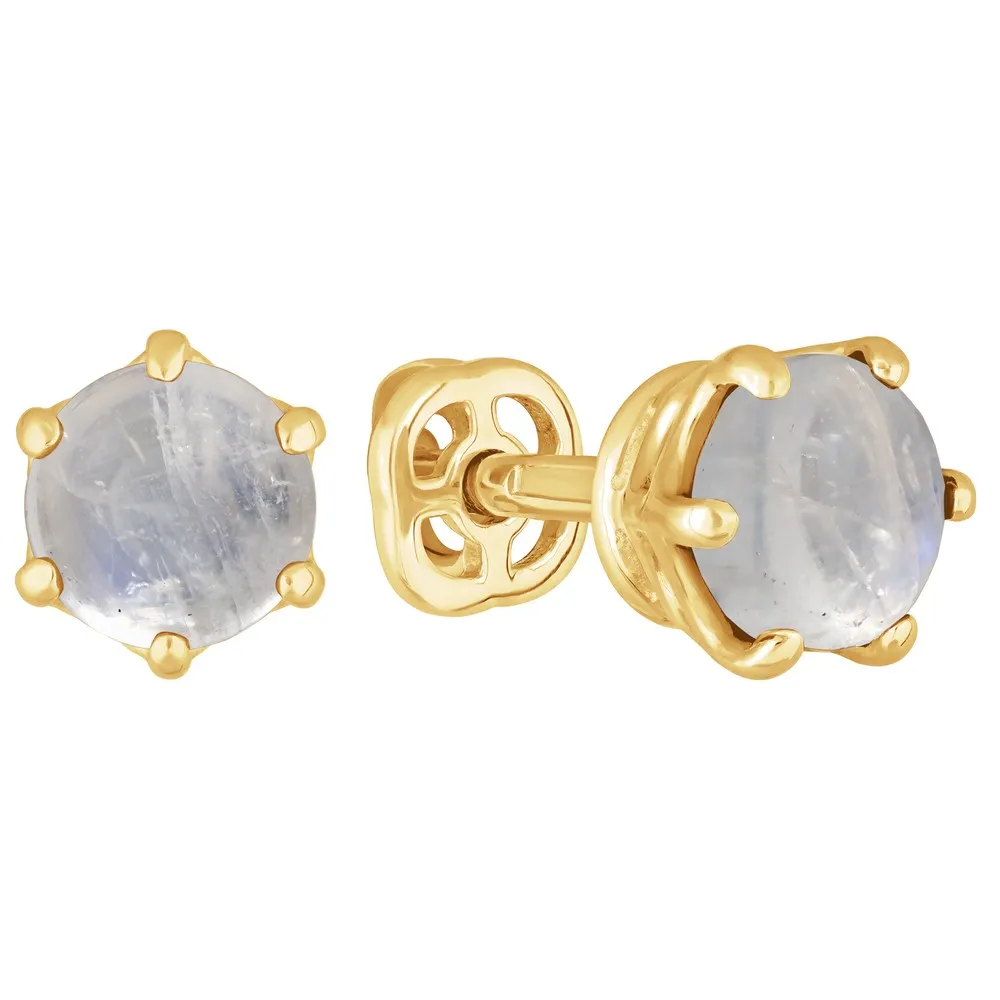 Серебряные серьги гвоздики (пусеты) с натуральным лунным камнем (каб.) 5 мм. / Желтое Золото.