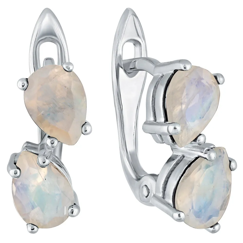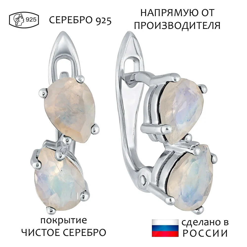 Серебряные серьги с натуральным лунным камнем - коллекция Дуэт / Чистое Серебро.