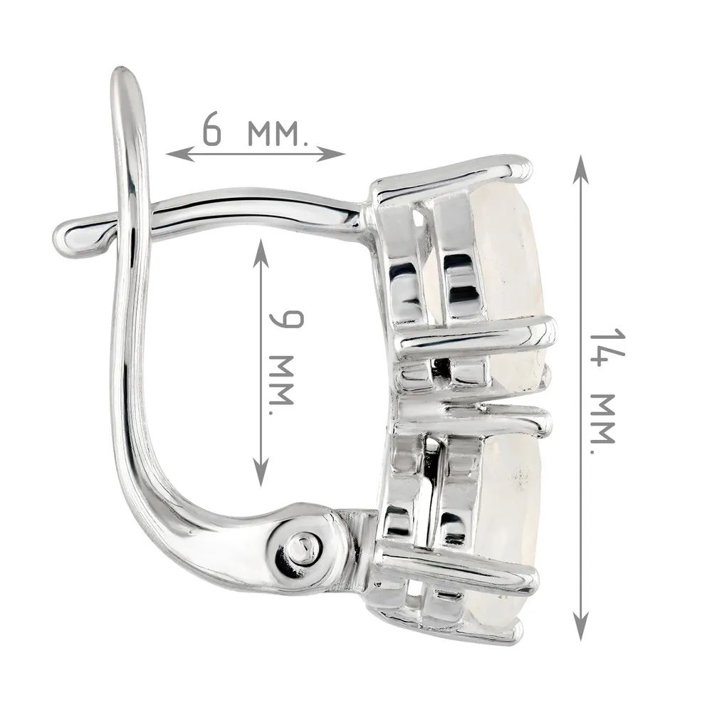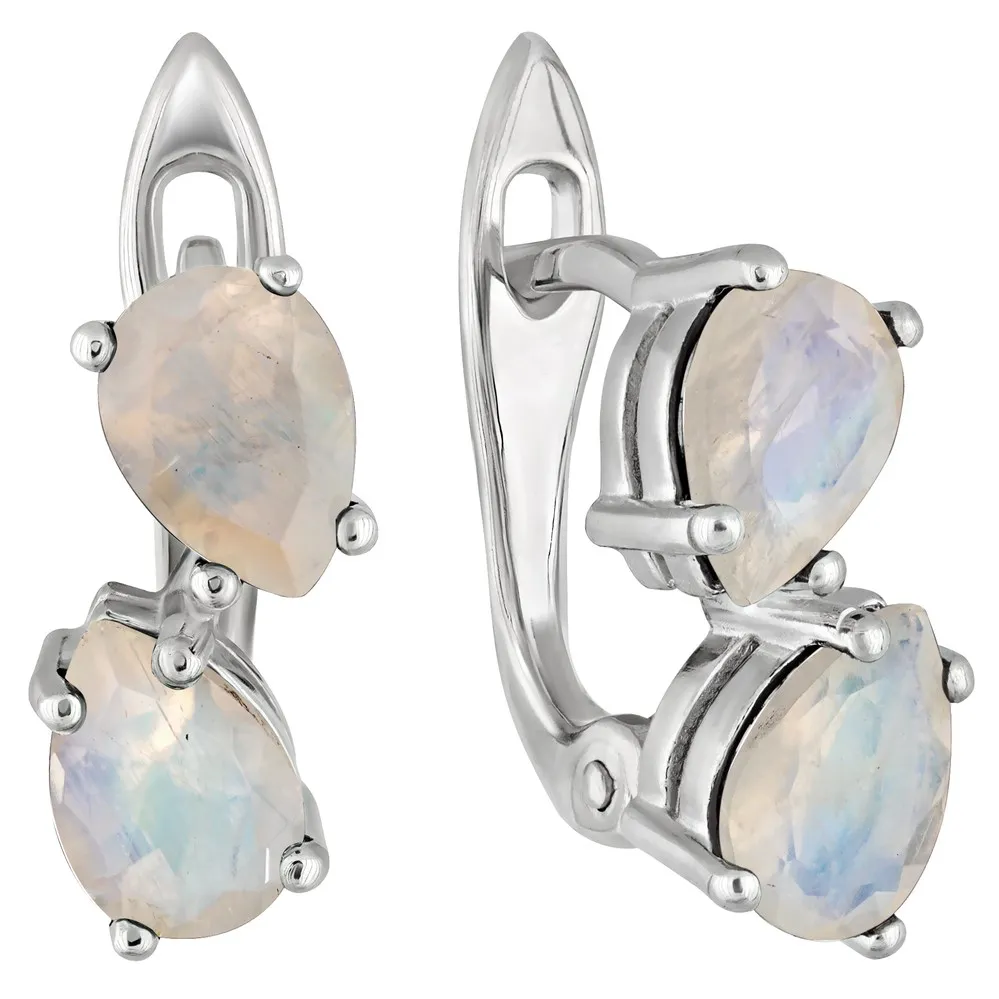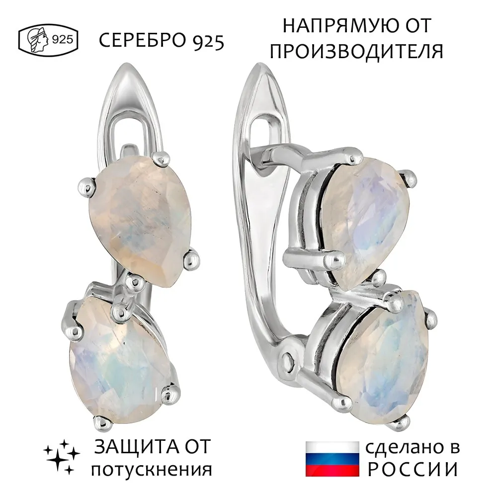 Серебряные серьги с натуральным лунным камнем - коллекция Дуэт / Без покрытия.
