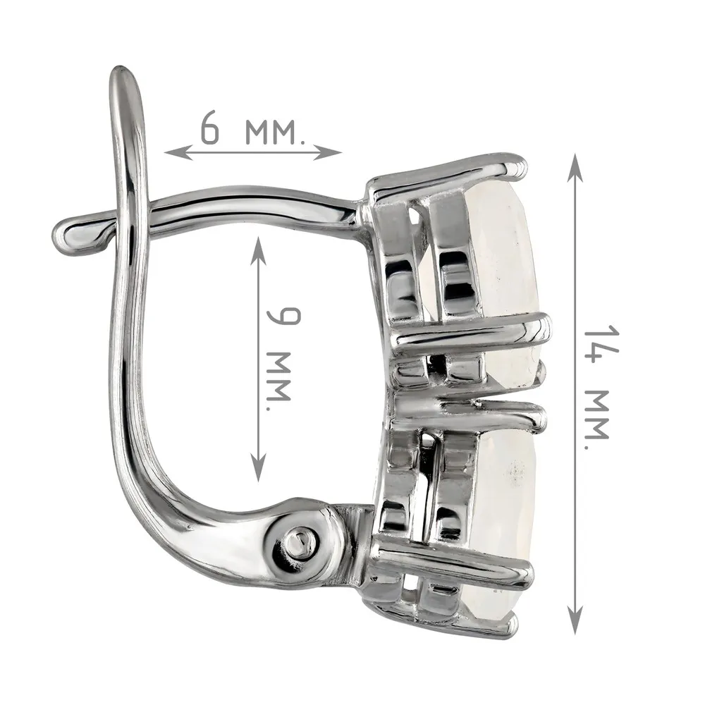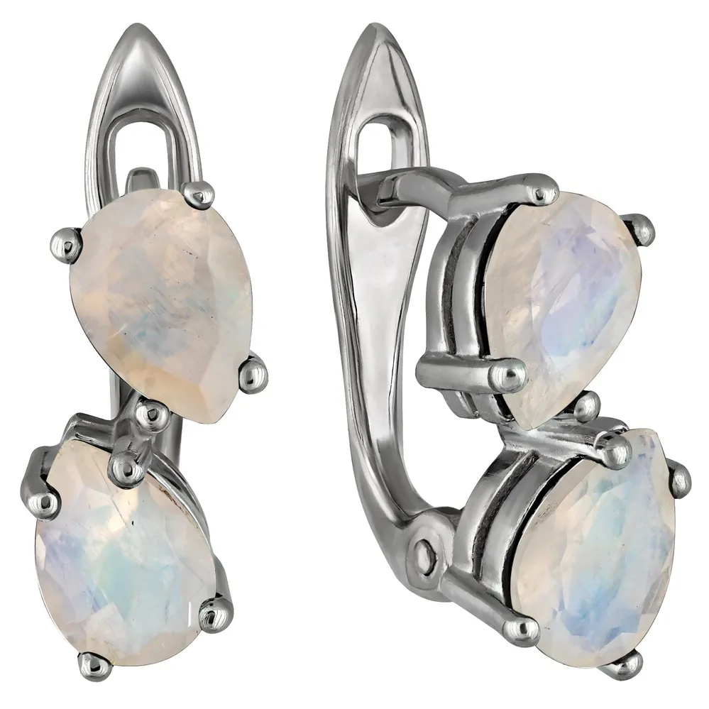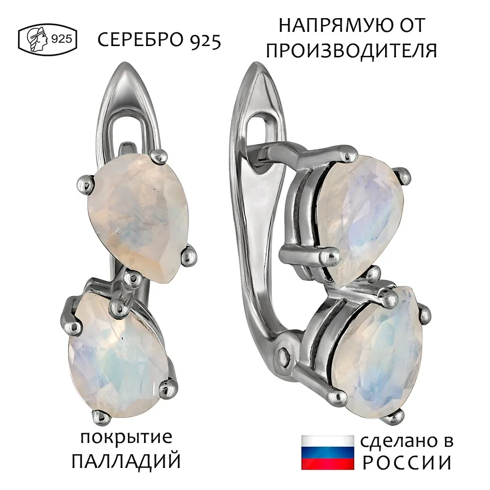 Серебряные серьги с натуральным лунным камнем - коллекция Дуэт / Палладий.