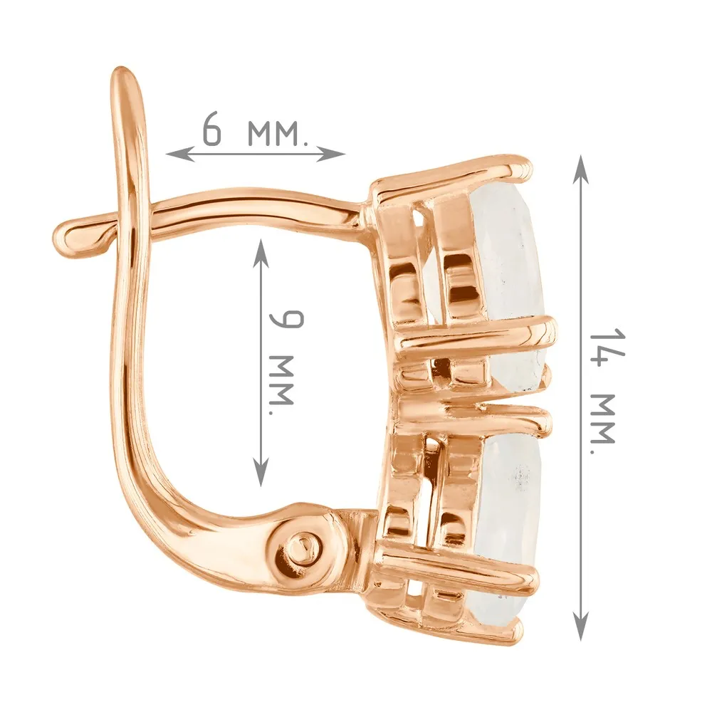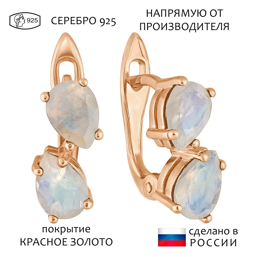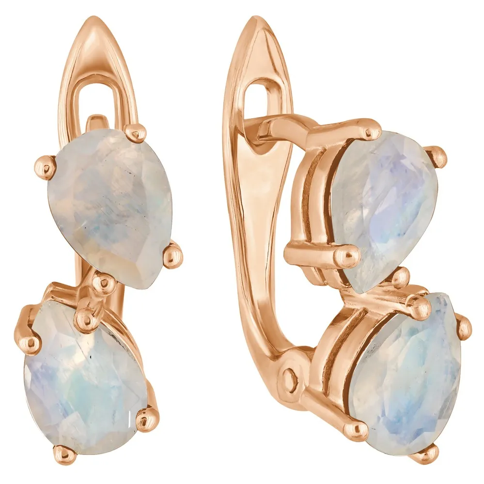 Серебряные серьги с натуральным лунным камнем - коллекция Дуэт / Красное золото.