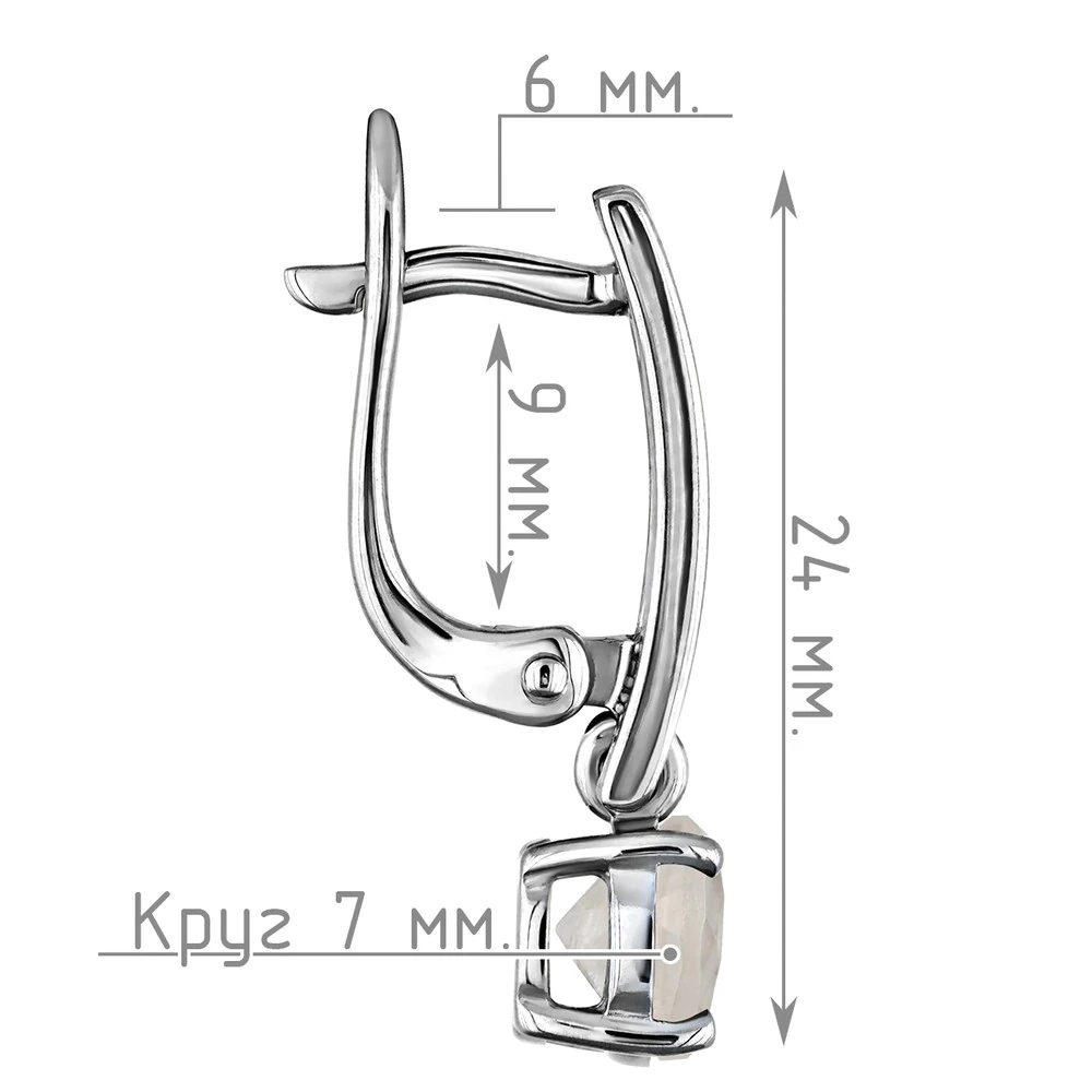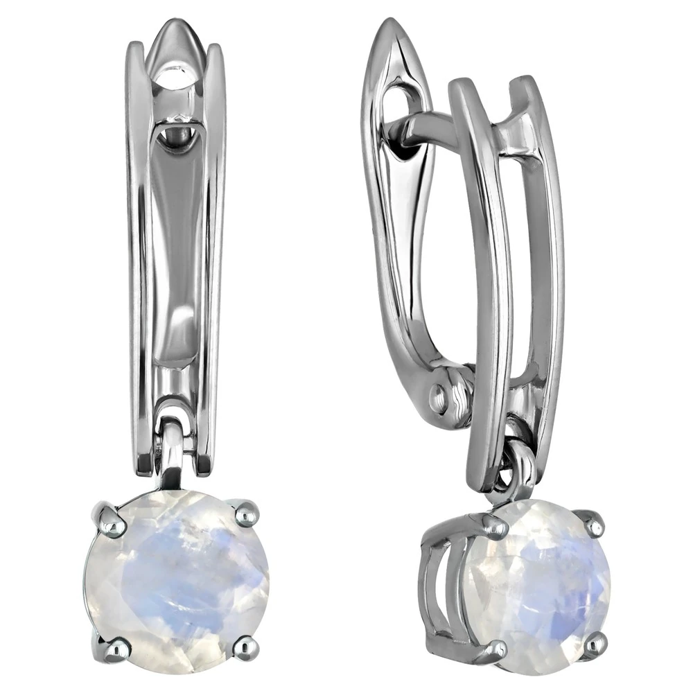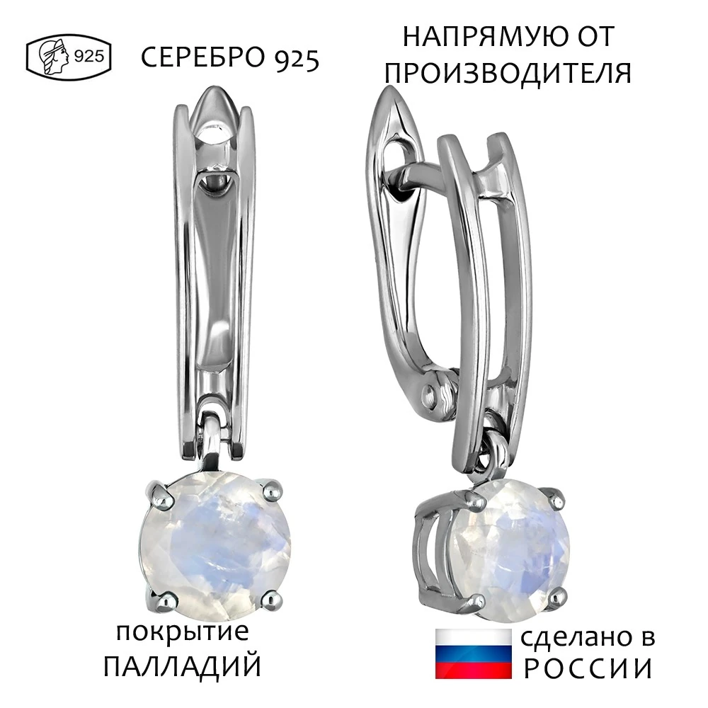Серебряные серьги с натуральным лунным камнем - коллекция Классик (мини) / Палладий.