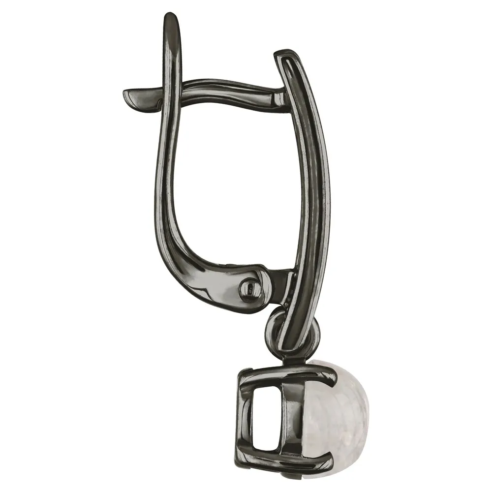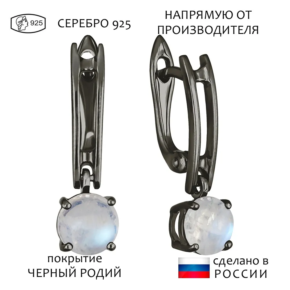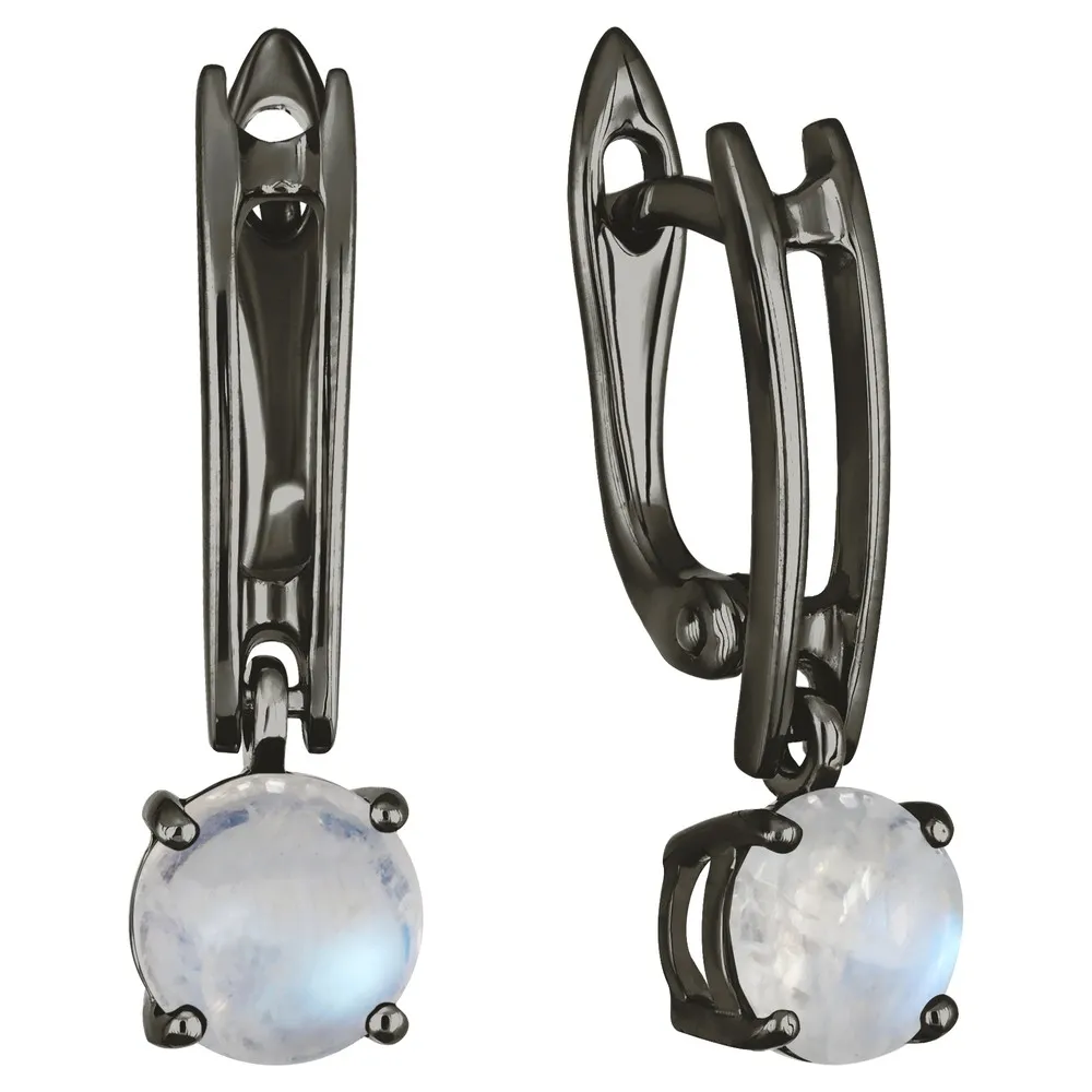 Серебряные серьги с натуральным лунным камнем (каб.) - коллекция Классик (мини) / Черный Родий.