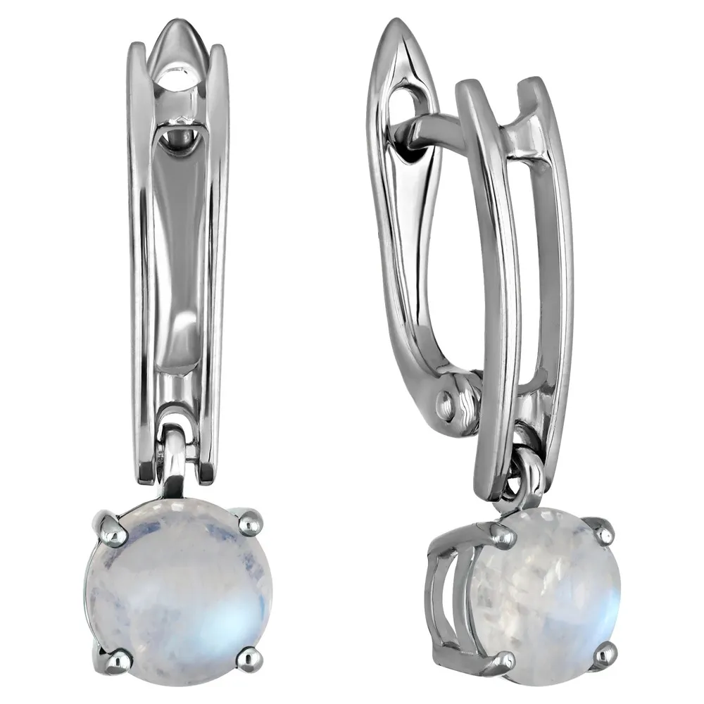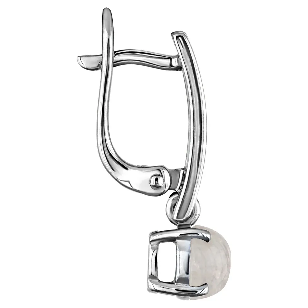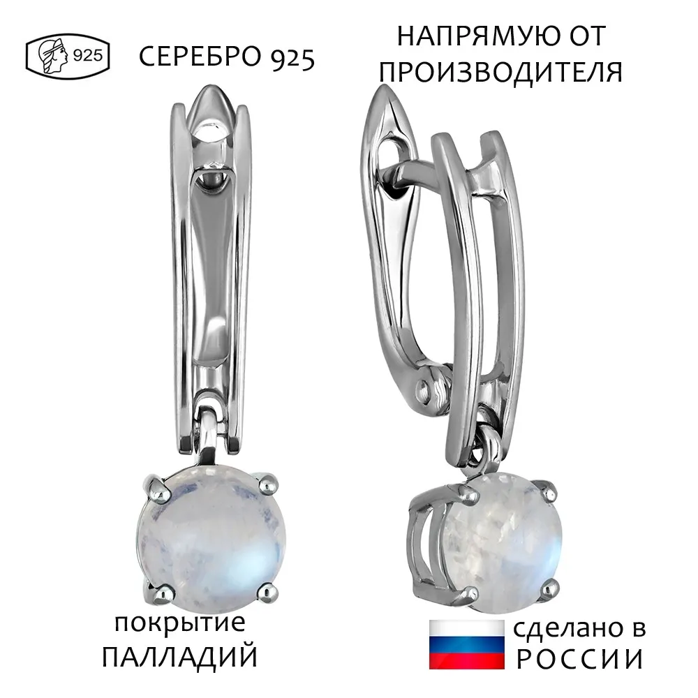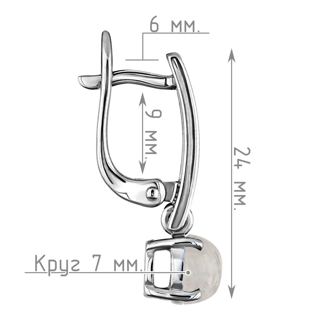 Серебряные серьги с натуральным лунным камнем (каб.) - коллекция Классик (мини) / Палладий.