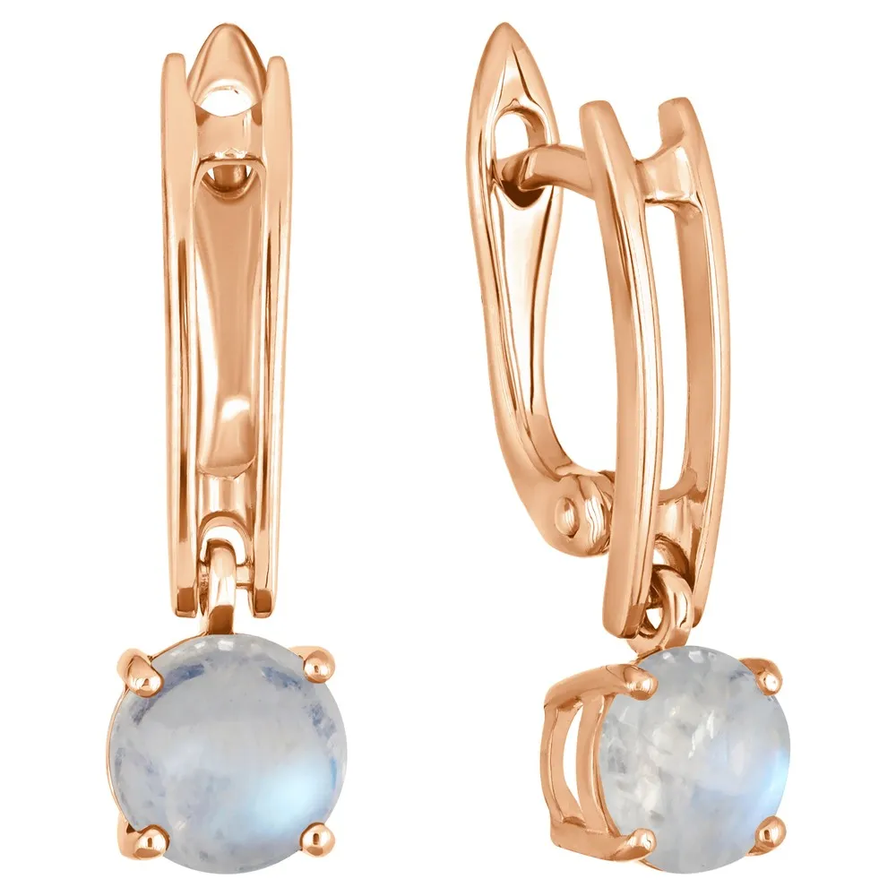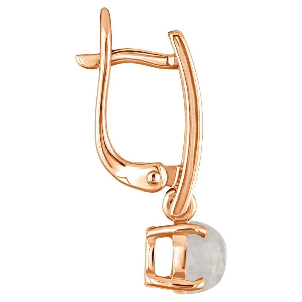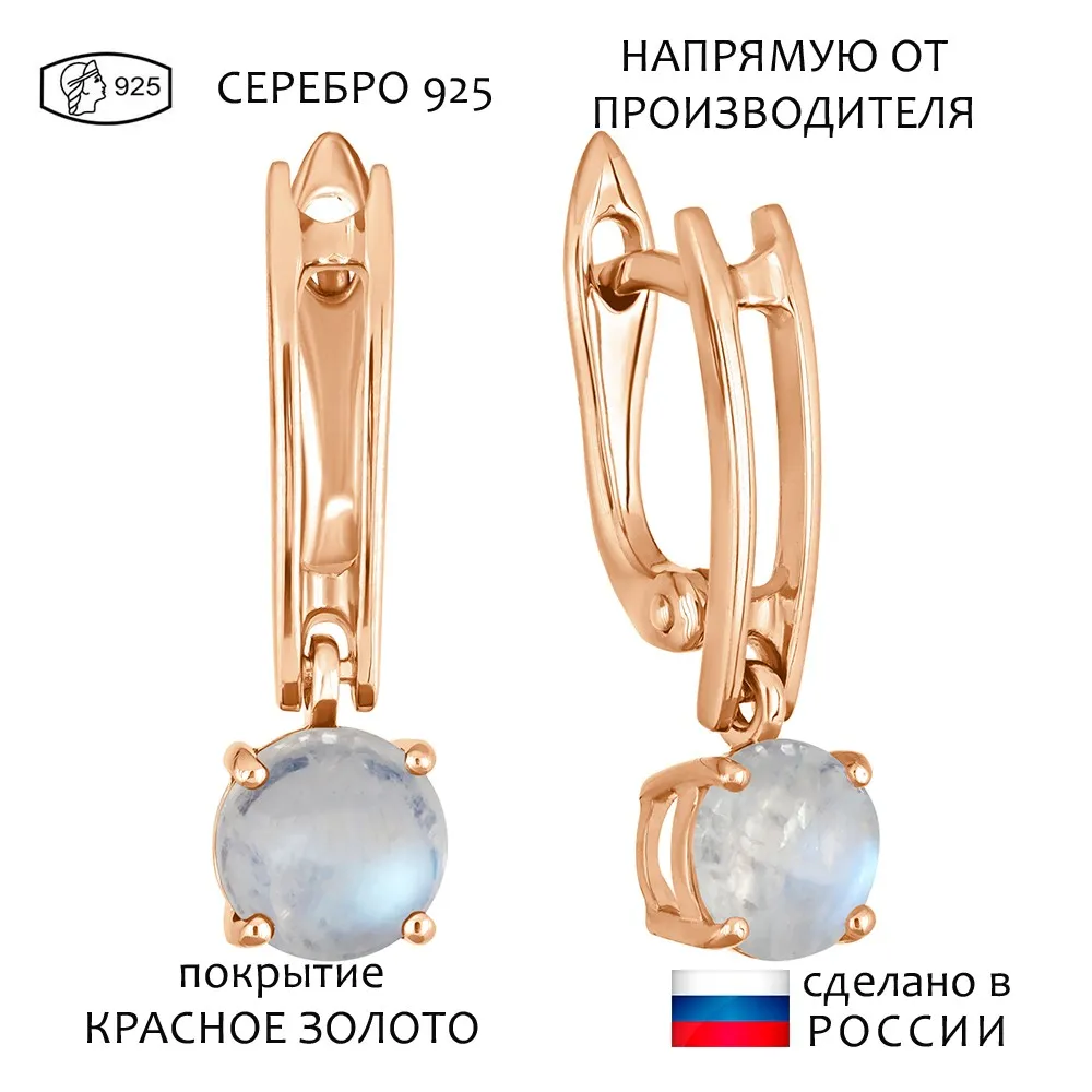 Серебряные серьги с натуральным лунным камнем (каб.) - коллекция Классик (мини) / Красное золото.
