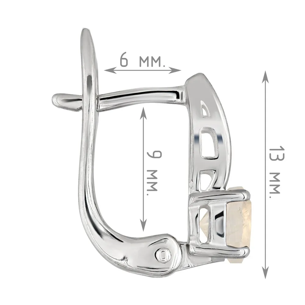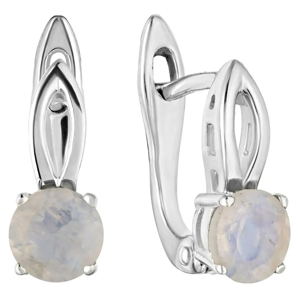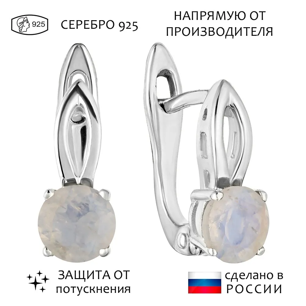 Серебряные серьги с натуральным лунным камнем - коллекция Мона / Без покрытия.