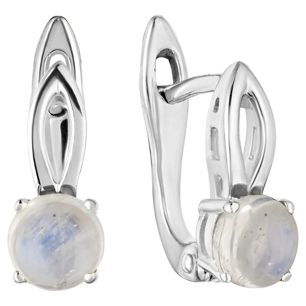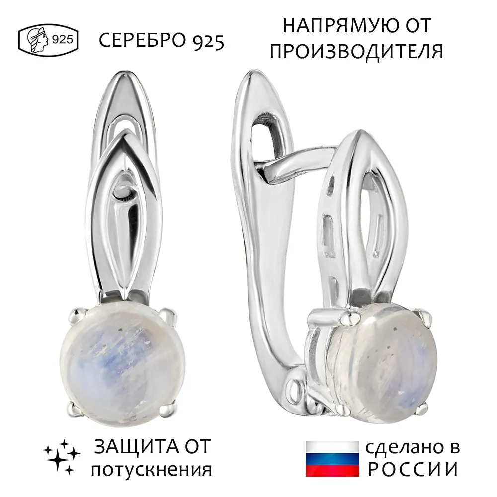Серебряные серьги с натуральным лунным камнем (каб.) - коллекция Мона / Без покрытия.