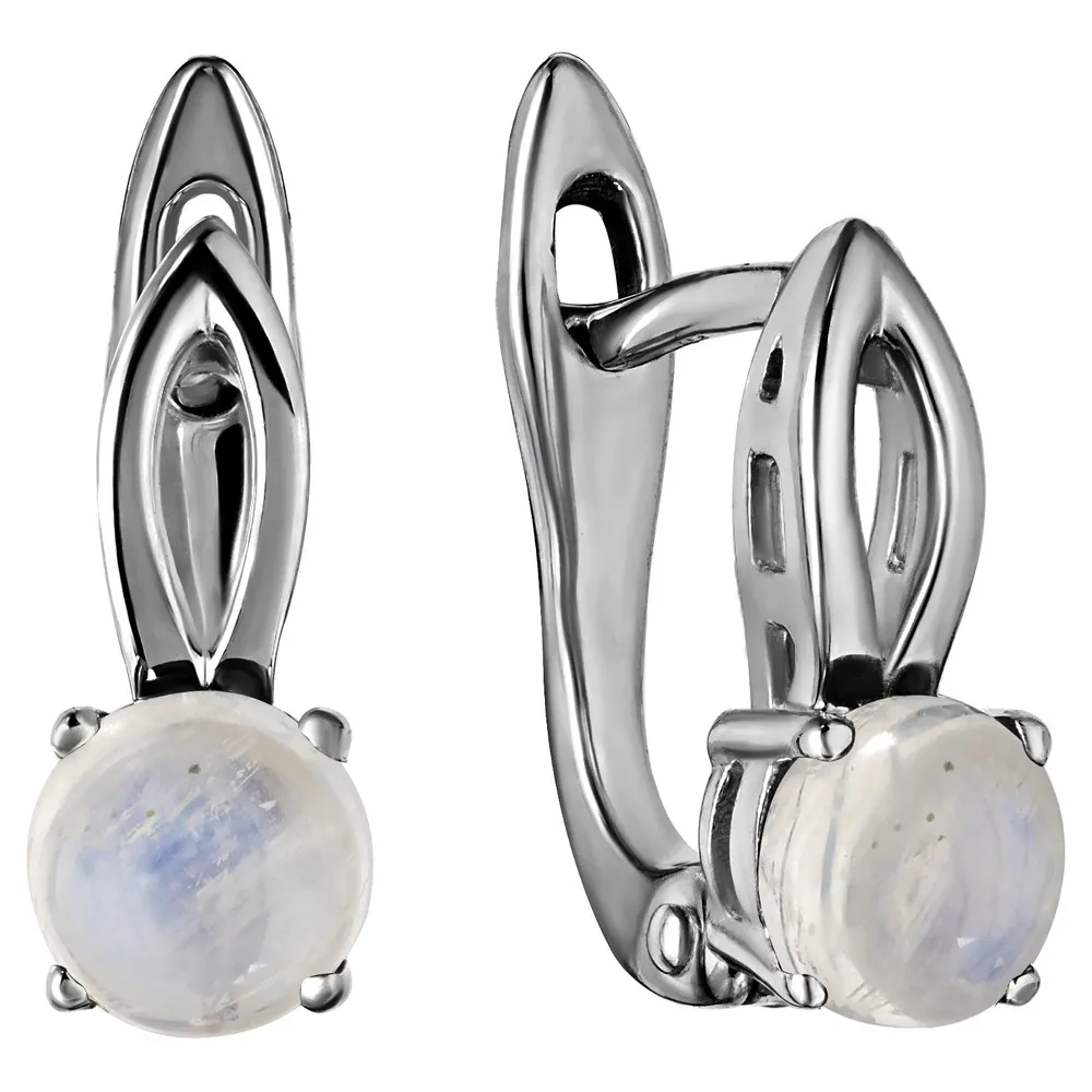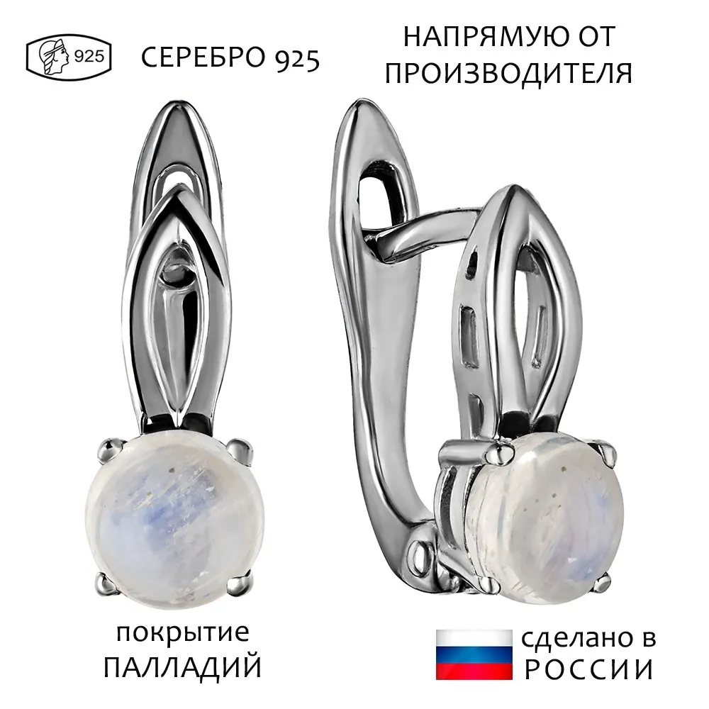 Серебряные серьги с натуральным лунным камнем (каб.) - коллекция Мона / Палладий.