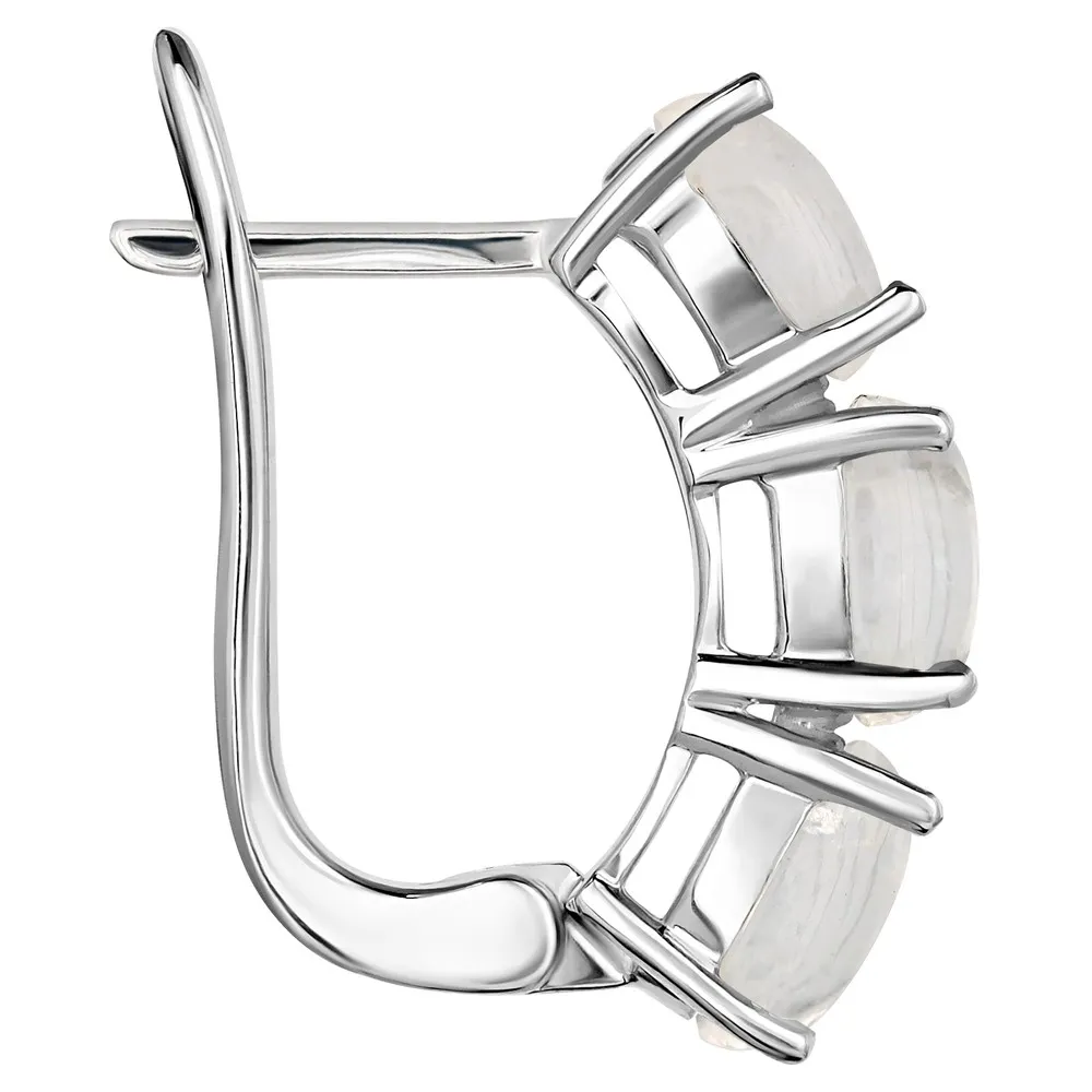 Серебряные серьги с натуральным лунным камнем (каб.) - коллекция Муза / Без покрытия.