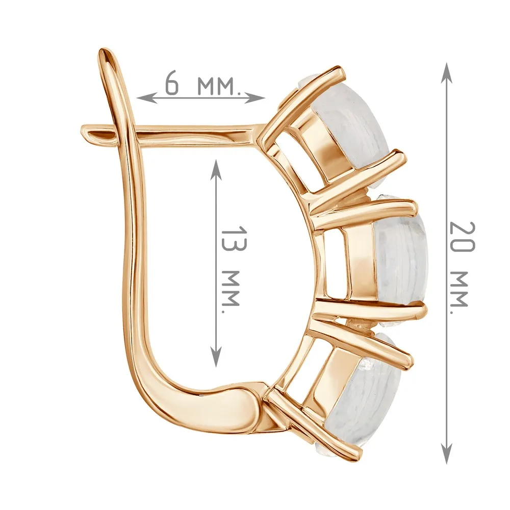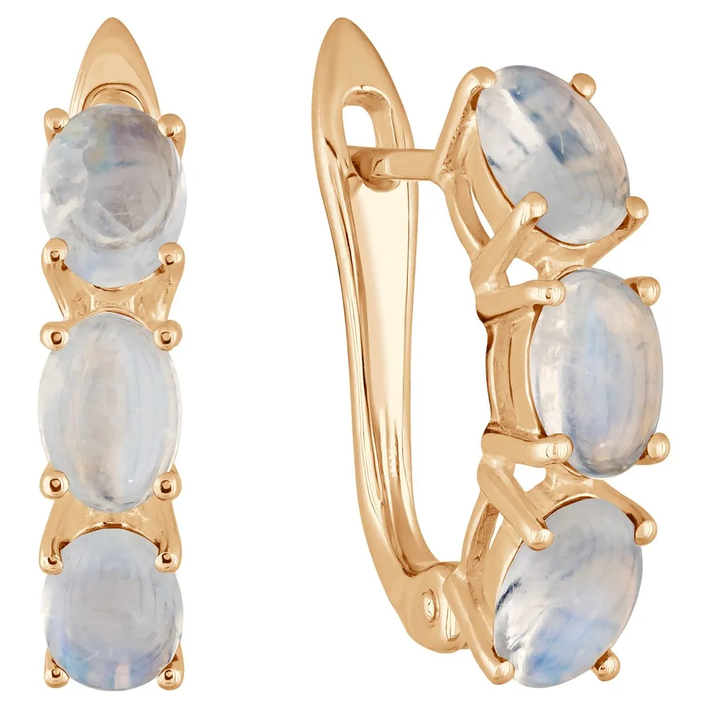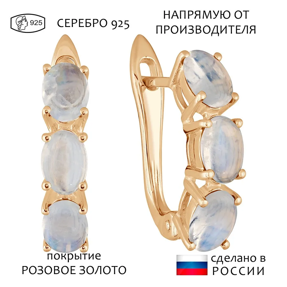 Серебряные серьги с натуральным лунным камнем (каб.) - коллекция Муза / Розовое Золото.