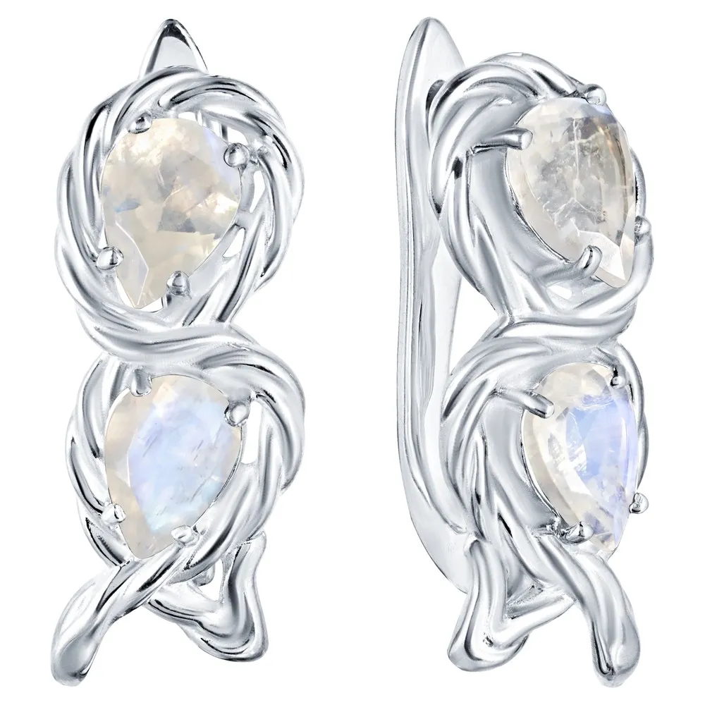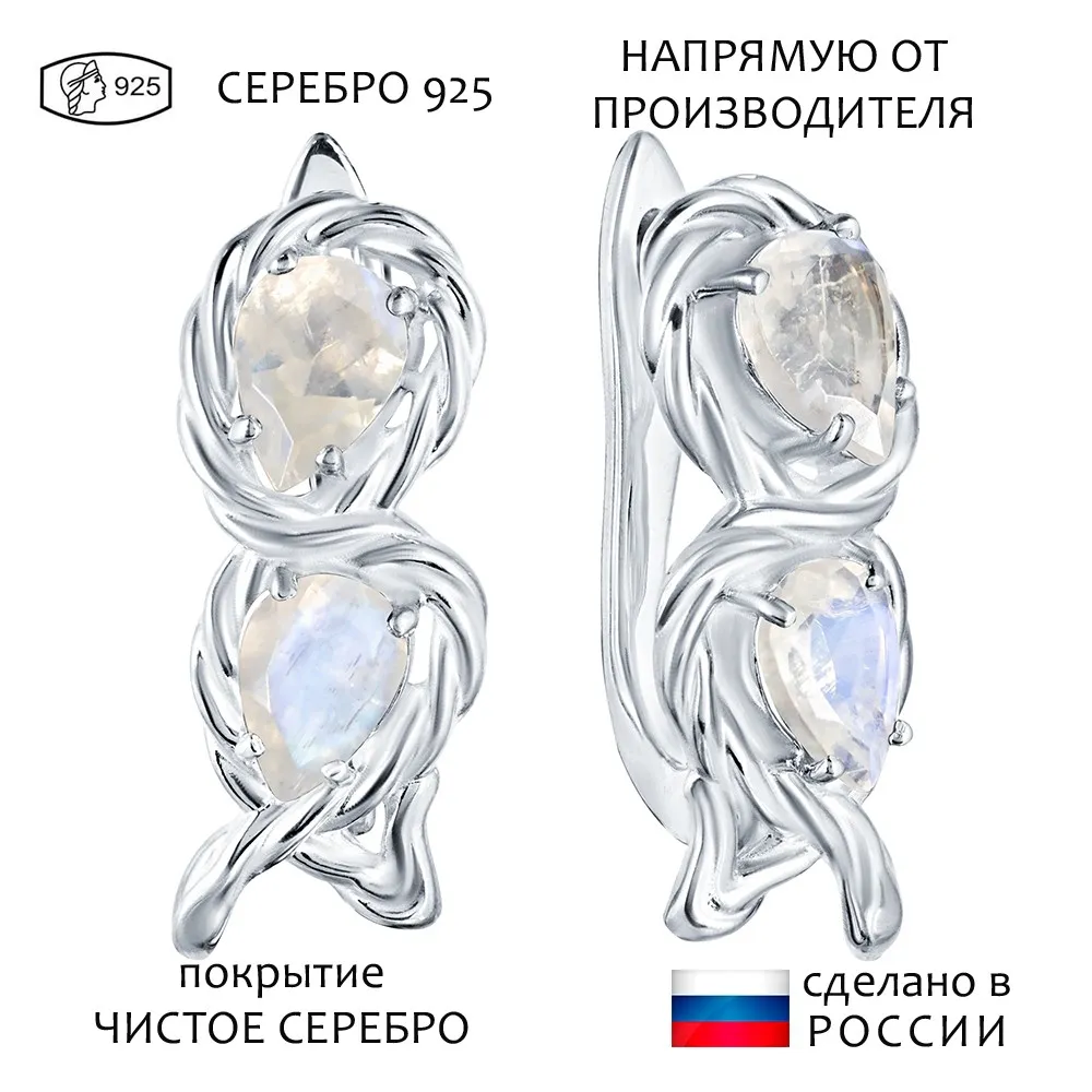 Серебряные серьги с натуральным лунным камнем - коллекция Ривьера / Чистое Серебро.