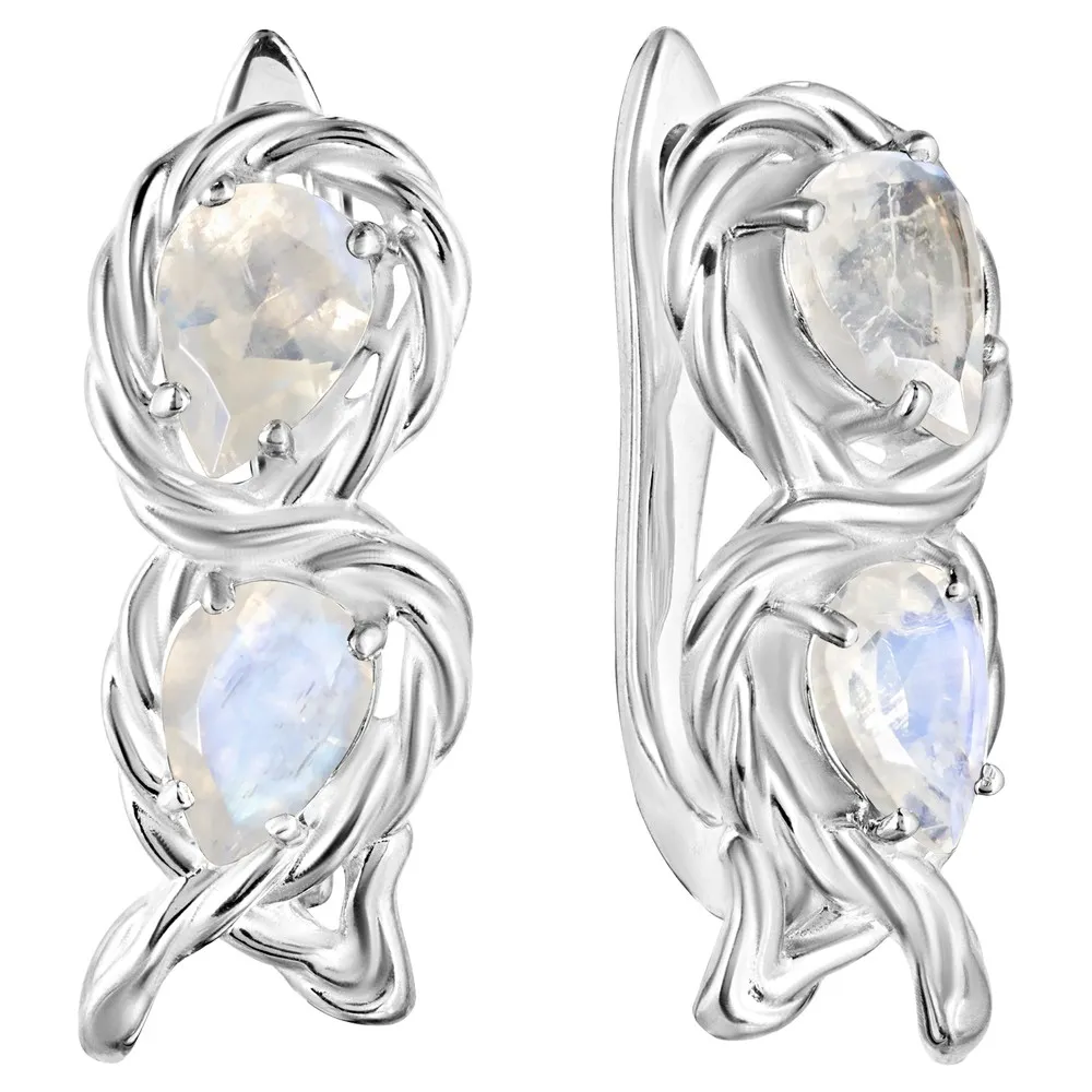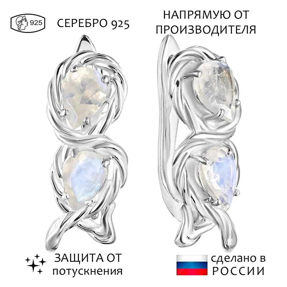 Серебряные серьги с натуральным лунным камнем - коллекция Ривьера / Без покрытия.