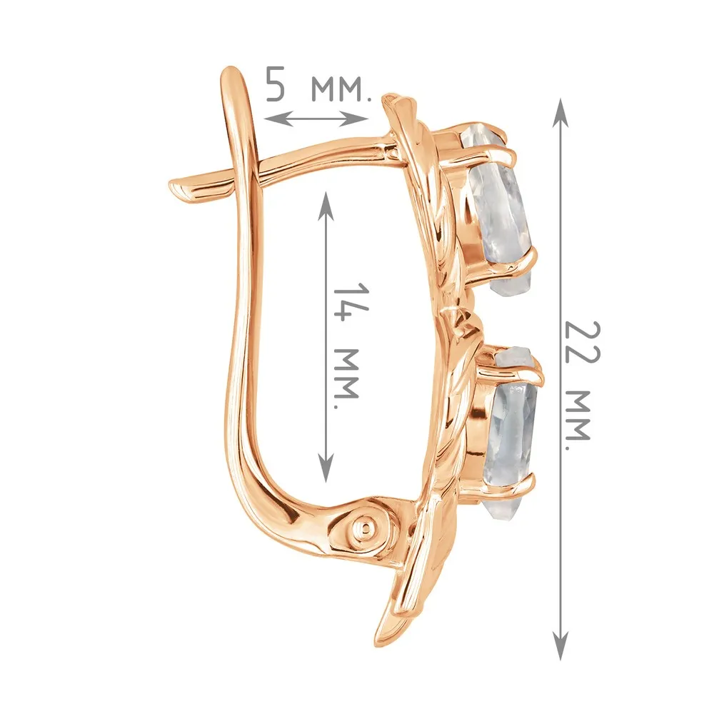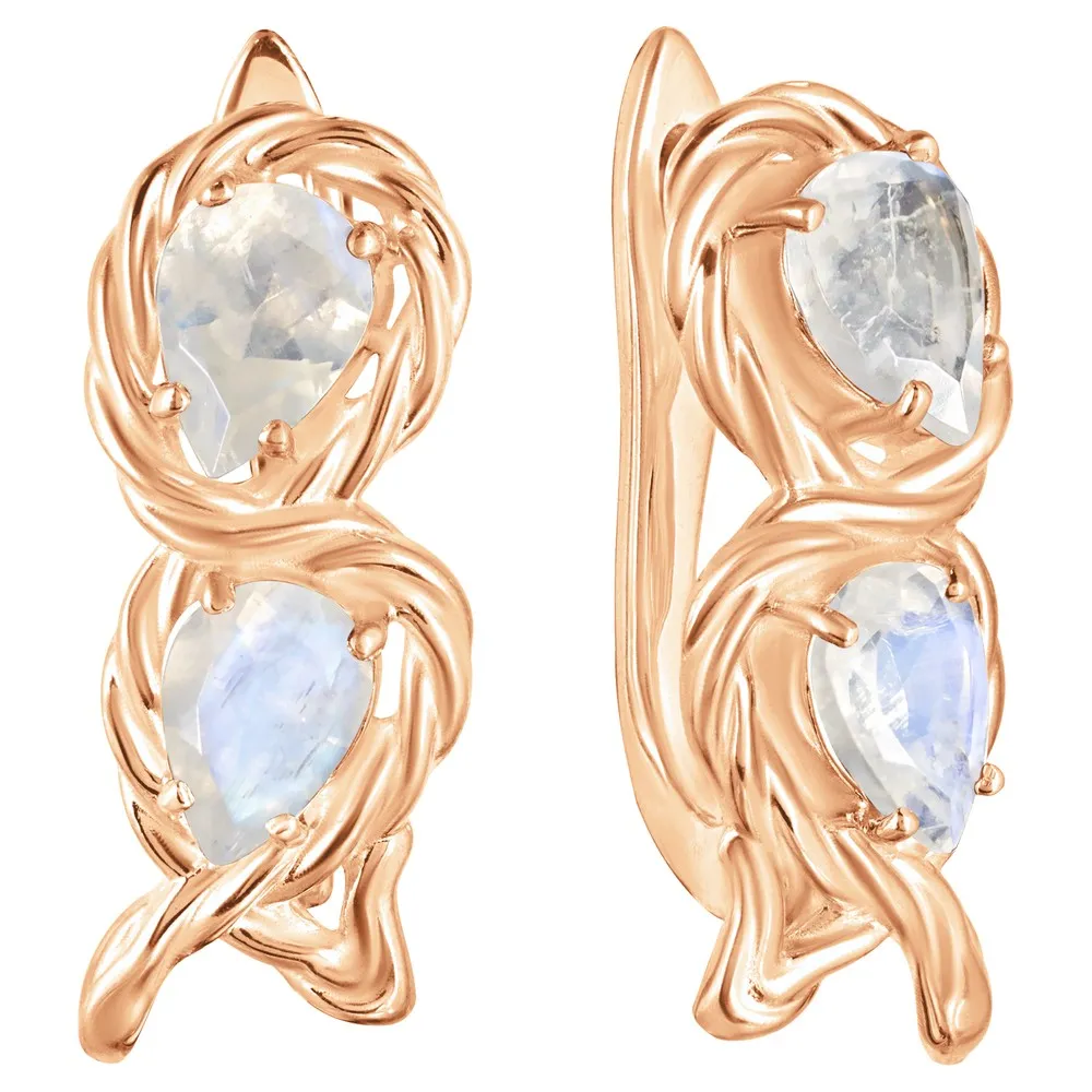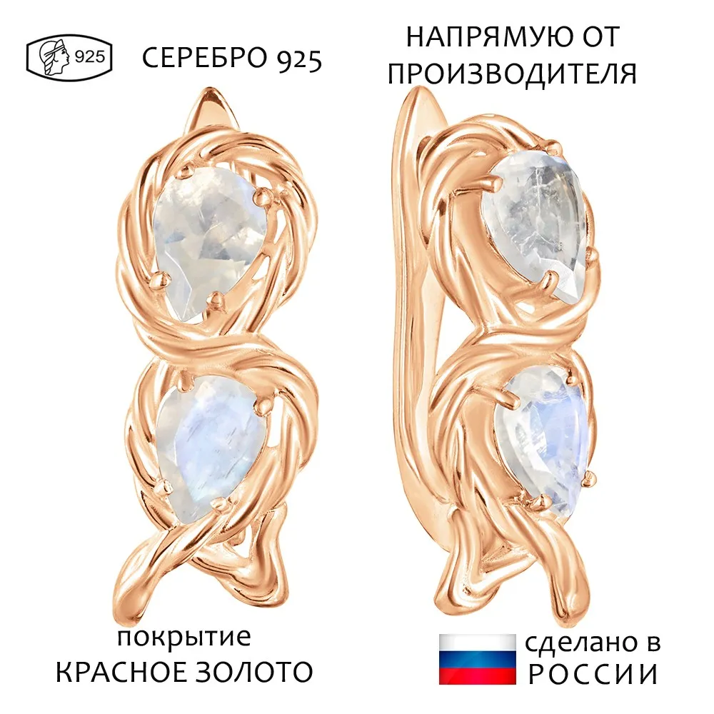 Серебряные серьги с натуральным лунным камнем - коллекция Ривьера / Красное золото.