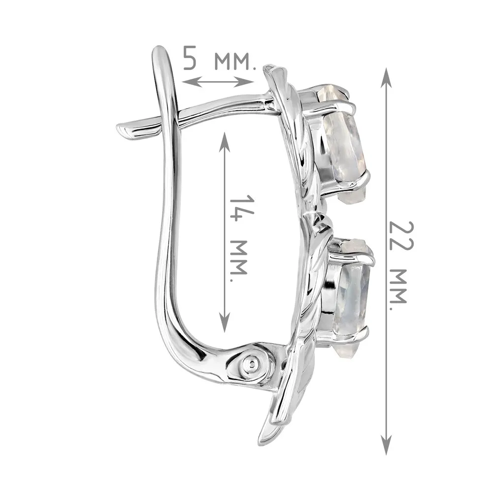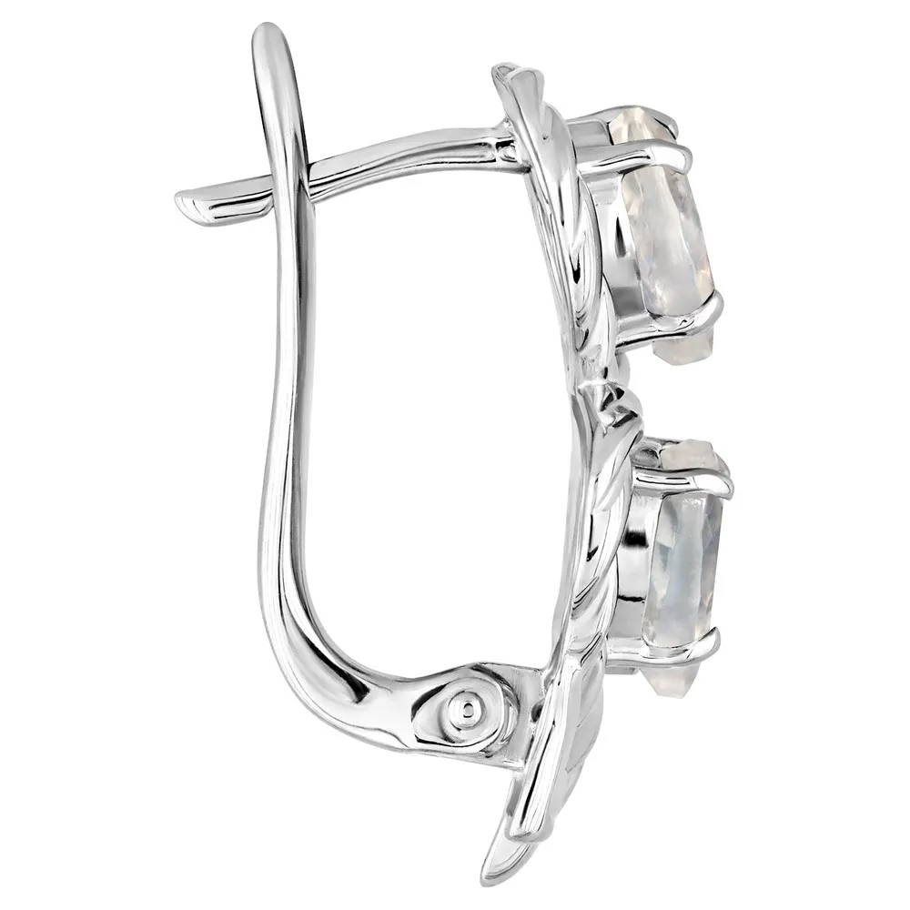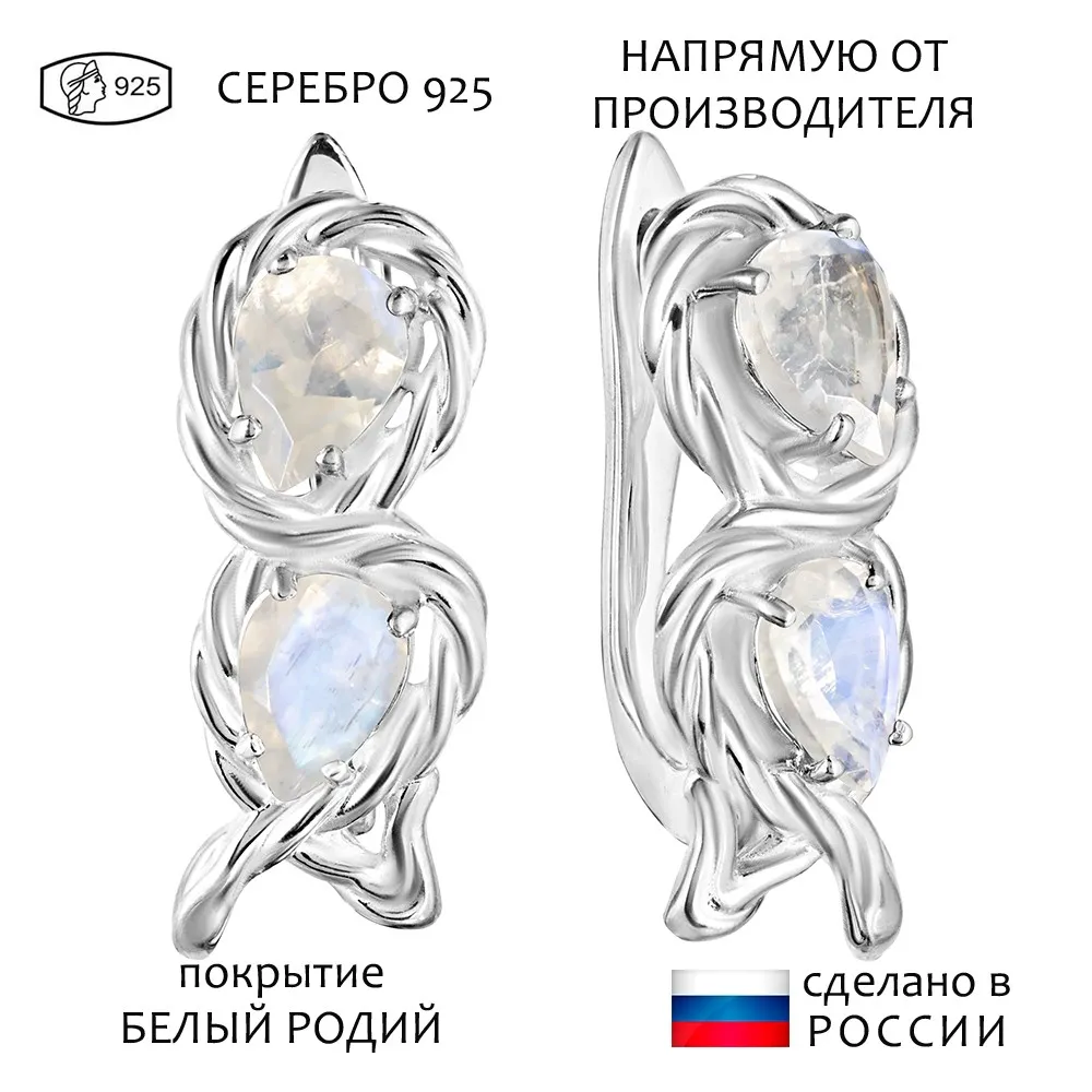Серебряные серьги с натуральным лунным камнем - коллекция Ривьера / Белый Родий.