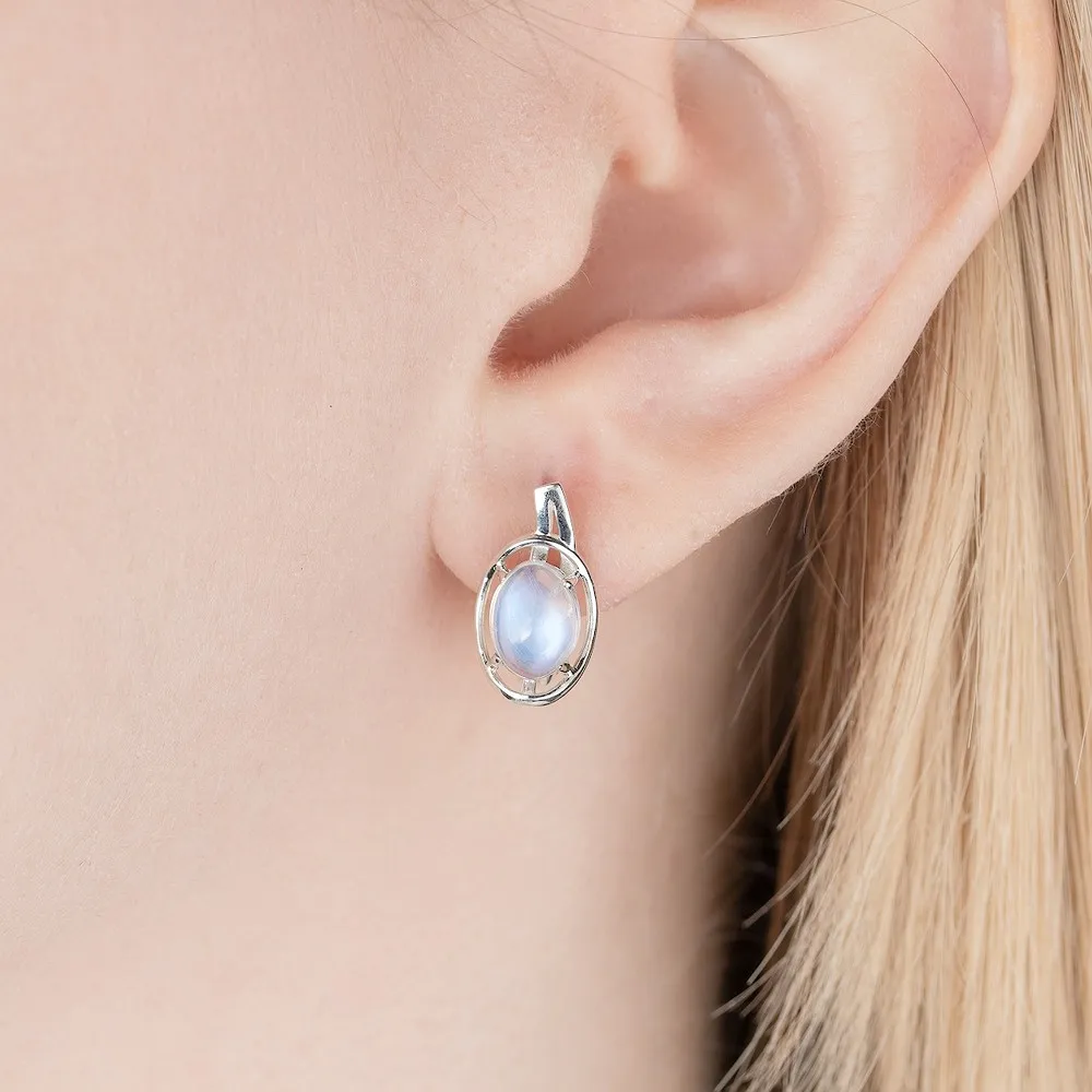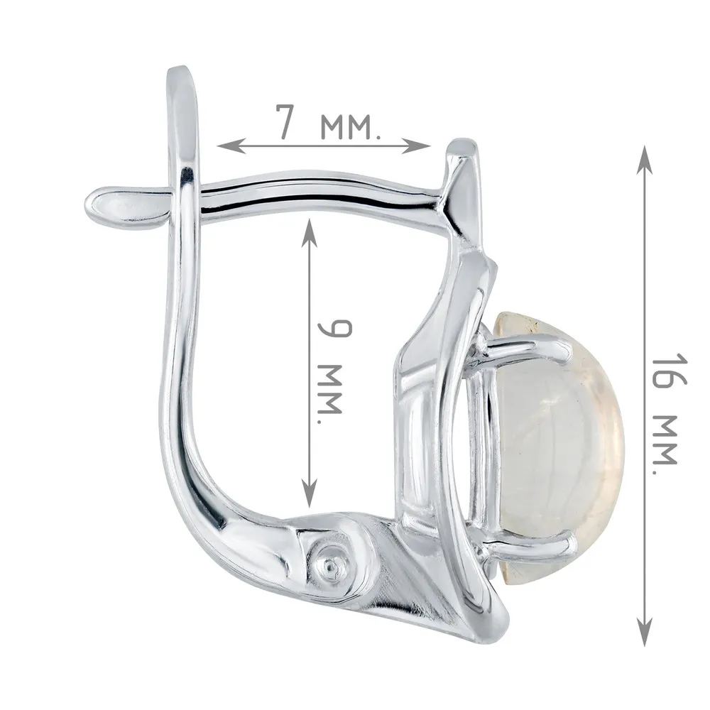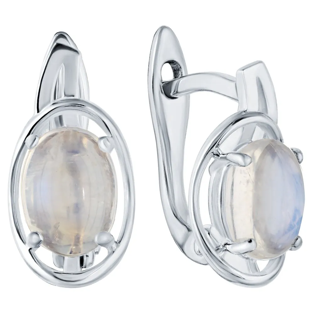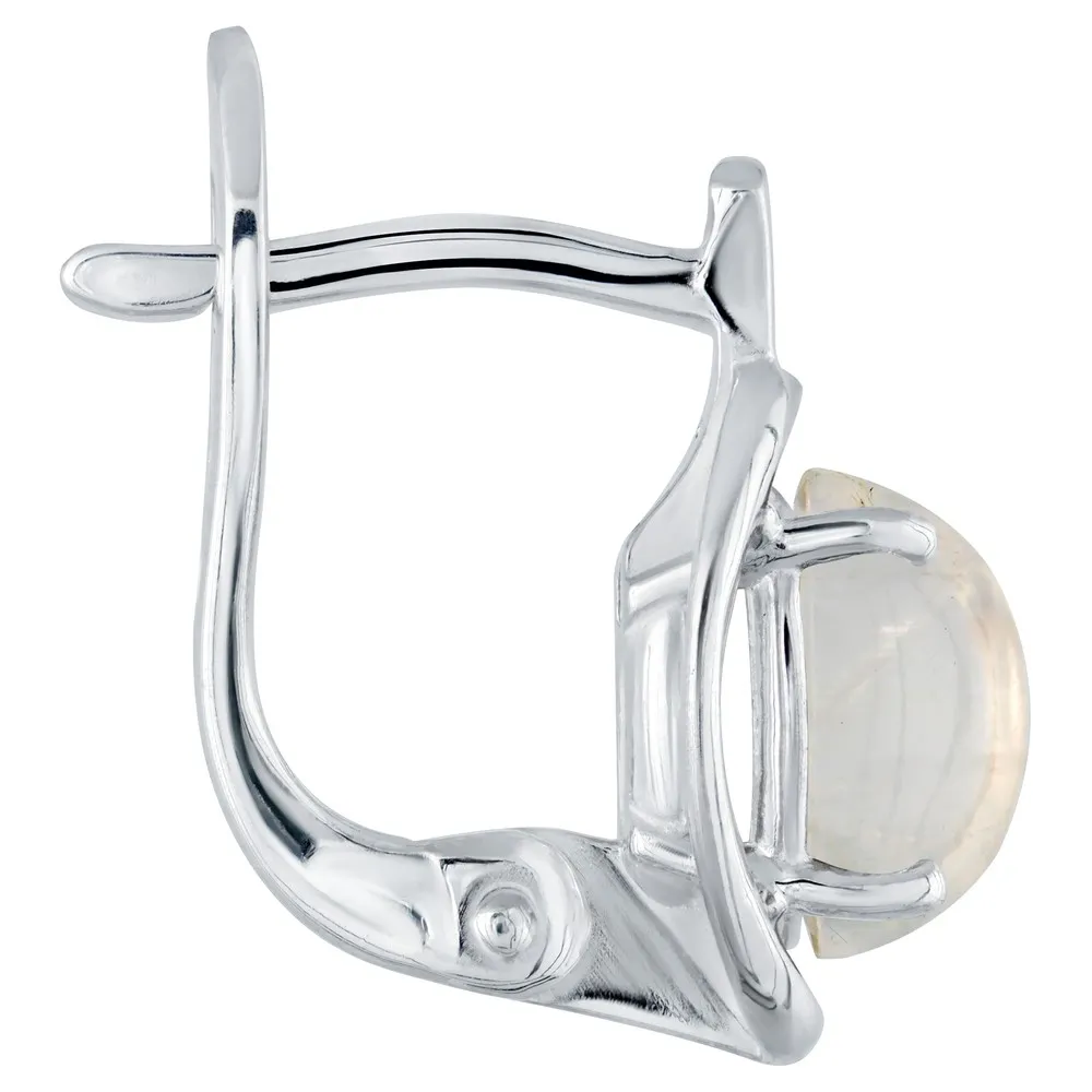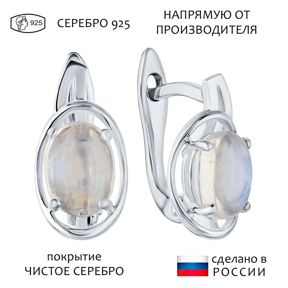 Серебряные серьги с натуральным лунным камнем (каб.) - коллекция Фрейя / Чистое Серебро.