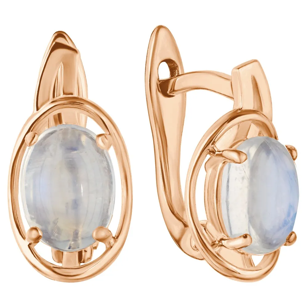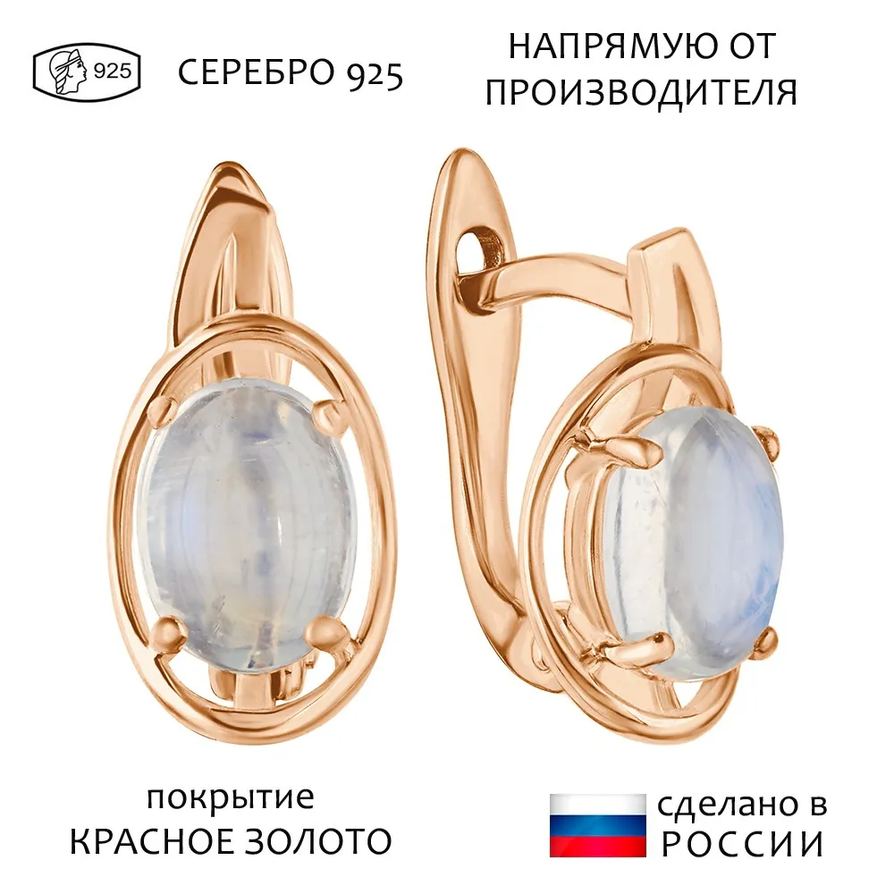 Серебряные серьги с натуральным лунным камнем (каб.) - коллекция Фрейя / Красное золото.