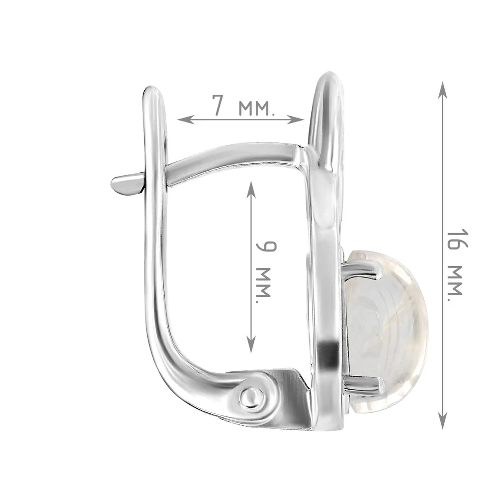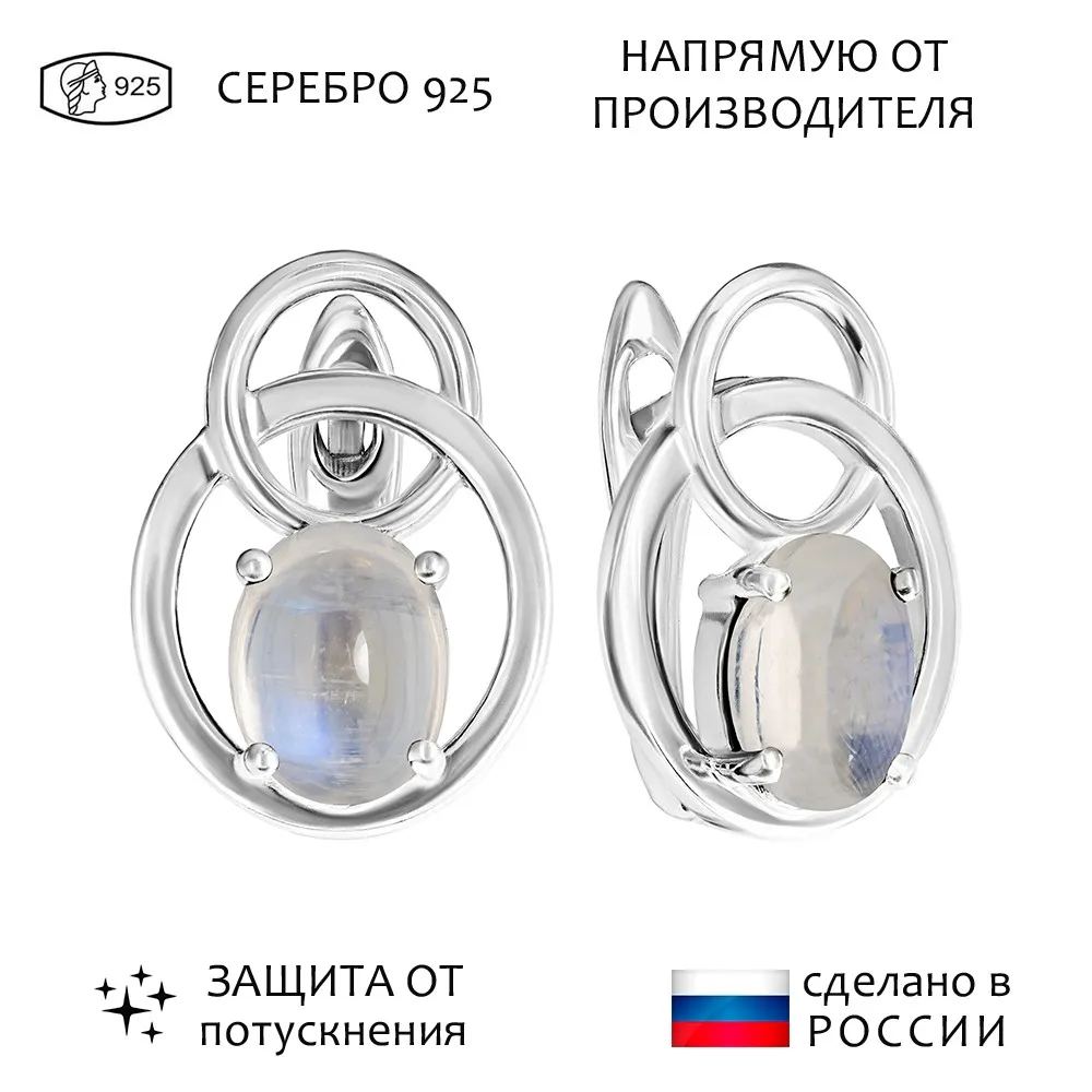 Серебряные серьги с натуральным лунным камнем (каб.) - коллекция Юнона / Без покрытия.