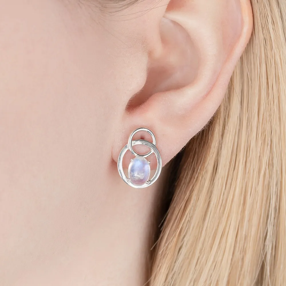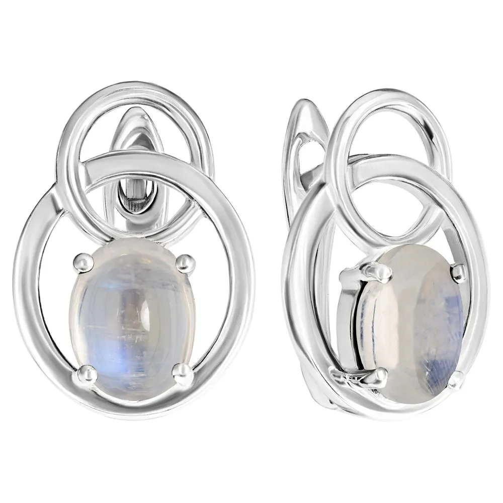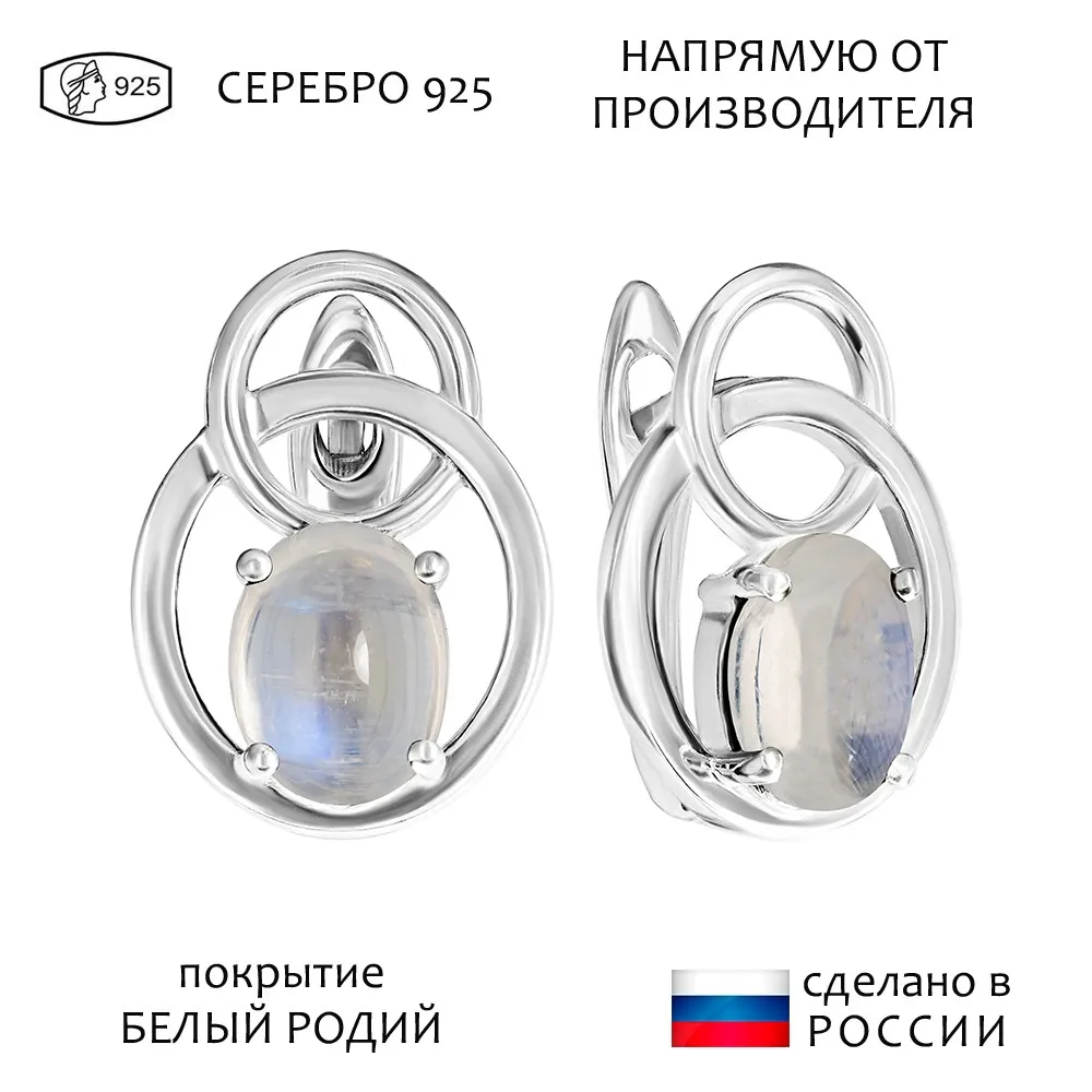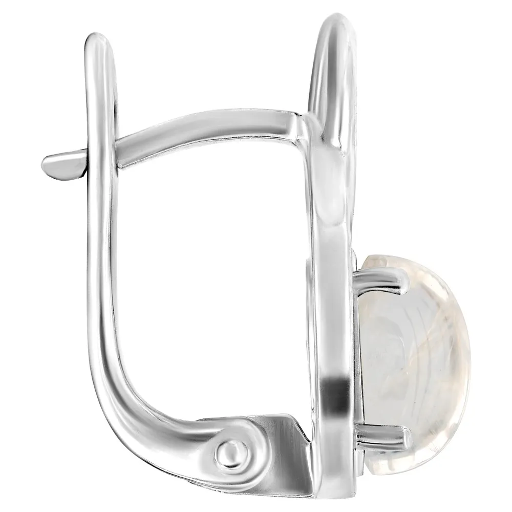 Серебряные серьги с натуральным лунным камнем (каб.) - коллекция Юнона / Белый Родий.