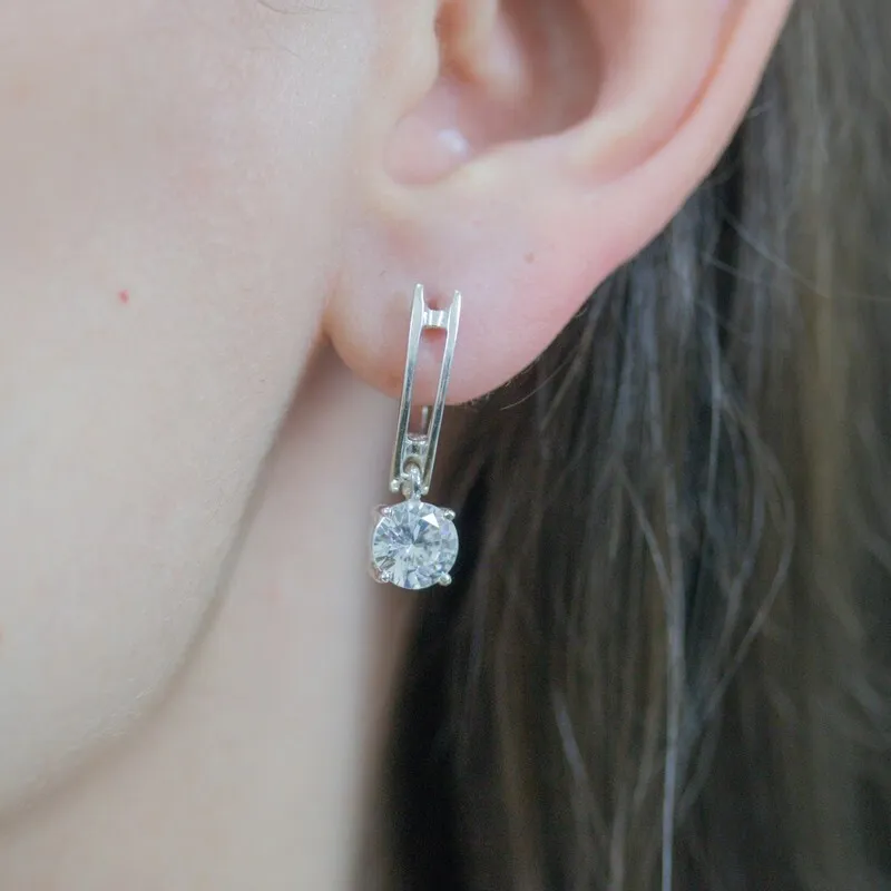 Серебряные серьги с нанокристаллом, цвет белый - коллекция Классик (мини). Средний вес изделия с камнями 3.87 гр. Размер главного камня: круг 7 мм. Нанокристалл - синтезированный ювелирный нанокристалл, превосходящий по блеску, преломлению света, твердости, плотности простой фианит. Все изделия собственного производства и имеют гарантию 36 месяцев. Арт. 8231.