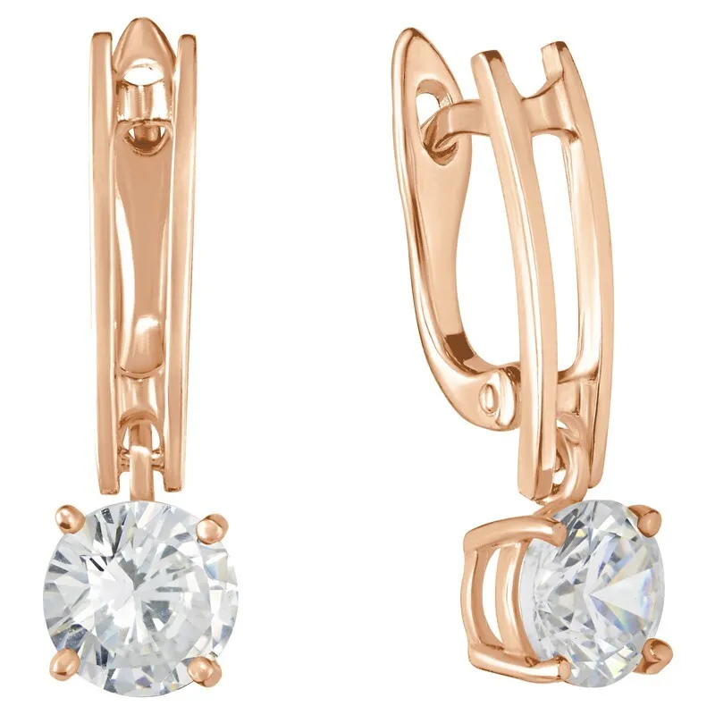 Серебряные серьги с нанокристаллом, цвет белый - коллекция Классик (мини) / покрытие Красное Золото