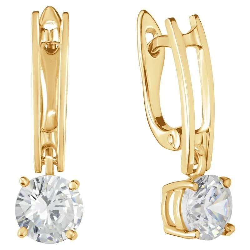 Серебряные серьги с нанокристаллом, цвет белый - коллекция Классик (мини) / покрытие Желтое Золото