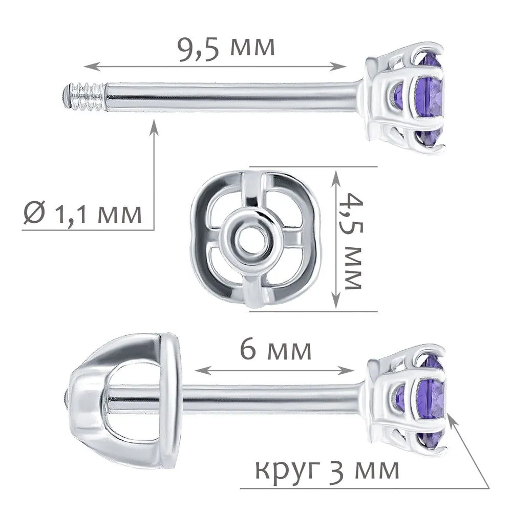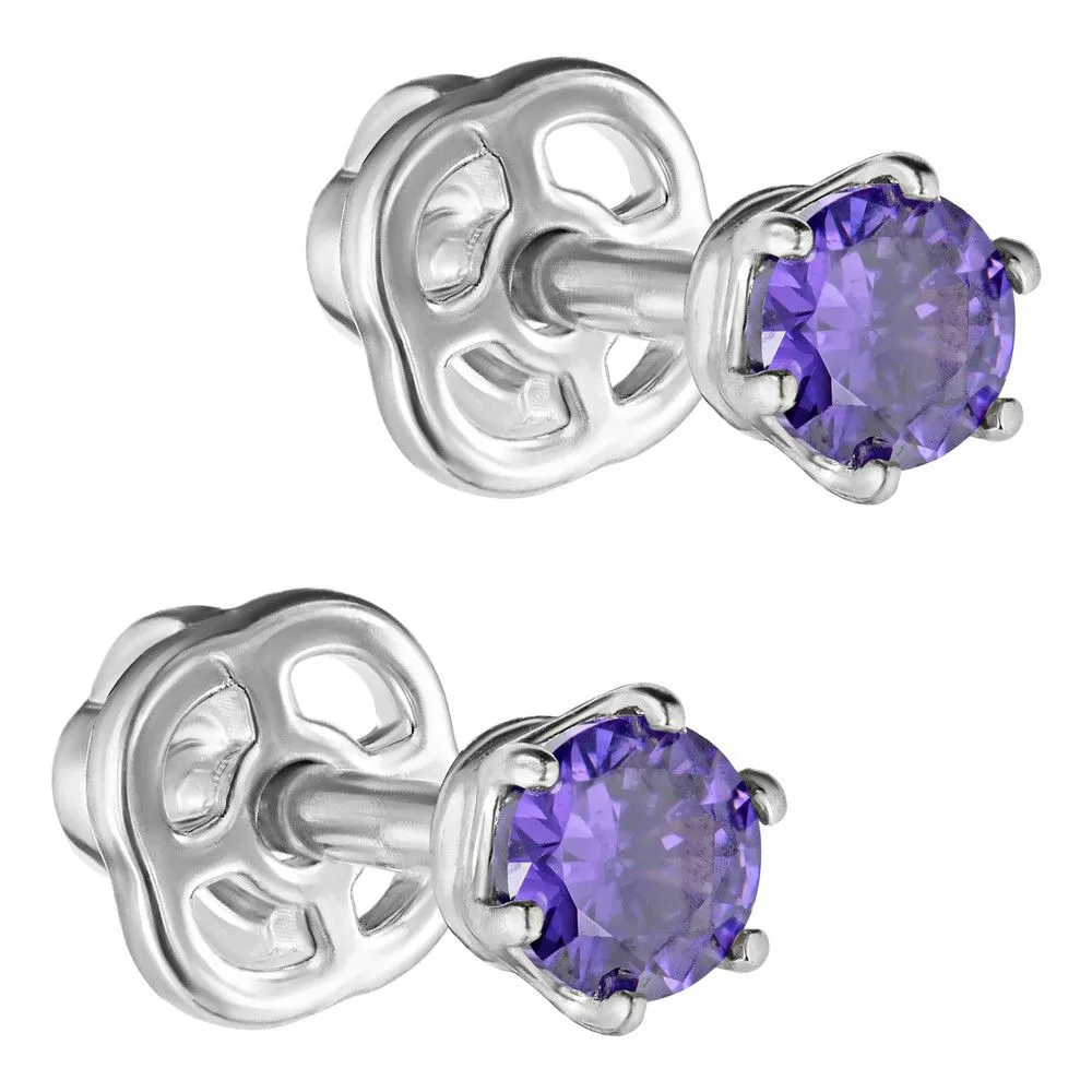 Серебряные серьги гвоздики (пусеты) с нанокристаллом, цвет фиолетовый, покрытие Чистое Серебро. Средний вес украшения с камнями 0.6 гр. Размер главного камня: круг 3 мм. Нанокристалл - синтезированный ювелирный нанокристалл, превосходящий по блеску, преломлению света, твердости, плотности простой фианит. Все изделия собственного производства и имеют гарантию 12 месяцев. Арт. 8232AG.