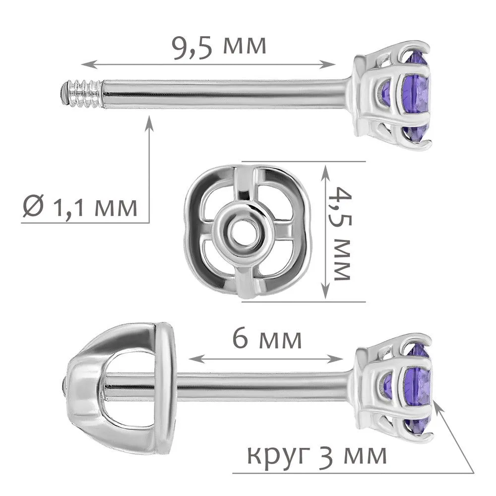 Серебряные серьги гвоздики (пусеты) с нанокристаллом, цвет фиолетовый, без покрытия. Средний вес украшения с камнями 0.6 гр. Размер главного камня: круг 3 мм. Нанокристалл - синтезированный ювелирный нанокристалл, превосходящий по блеску, преломлению света, твердости, плотности простой фианит. Все изделия собственного производства и имеют гарантию 12 месяцев. Арт. 8232NP.