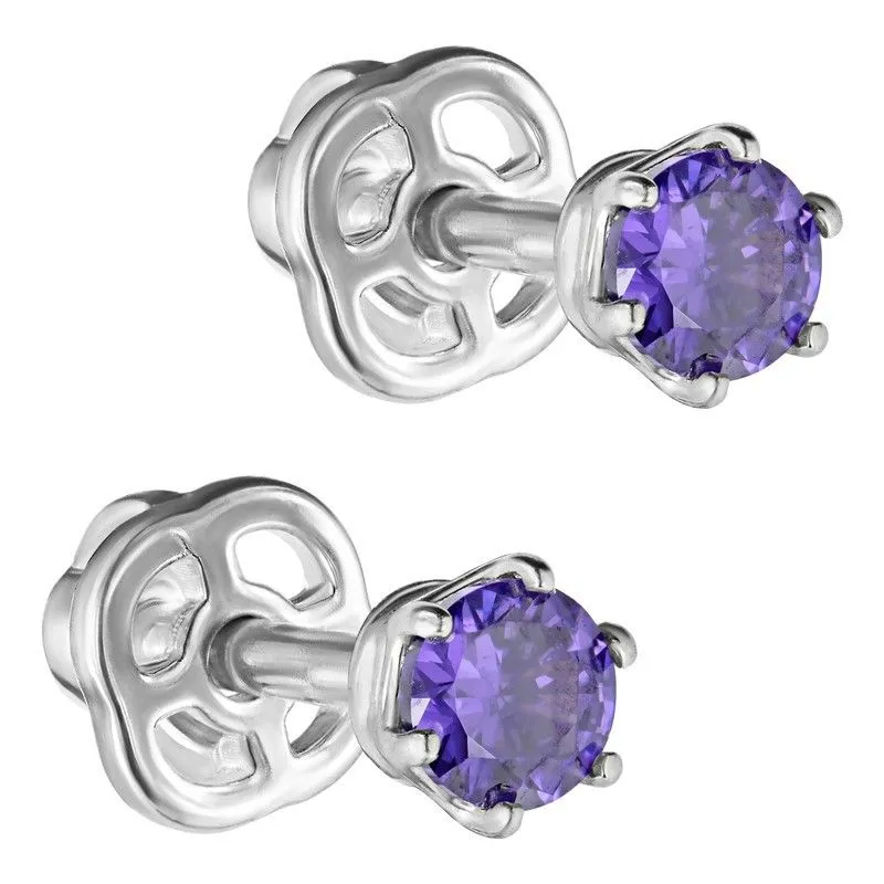 Серебряные серьги гвоздики (пусеты) с нанокристаллом, цвет фиолетовый, покрытие Белый Родий. Средний вес украшения с камнями 0.6 гр. Размер главного камня: круг 3 мм. Нанокристалл - синтезированный ювелирный нанокристалл, превосходящий по блеску, преломлению света, твердости, плотности простой фианит. Все изделия собственного производства и имеют гарантию 12 месяцев. Арт. 8232WR.