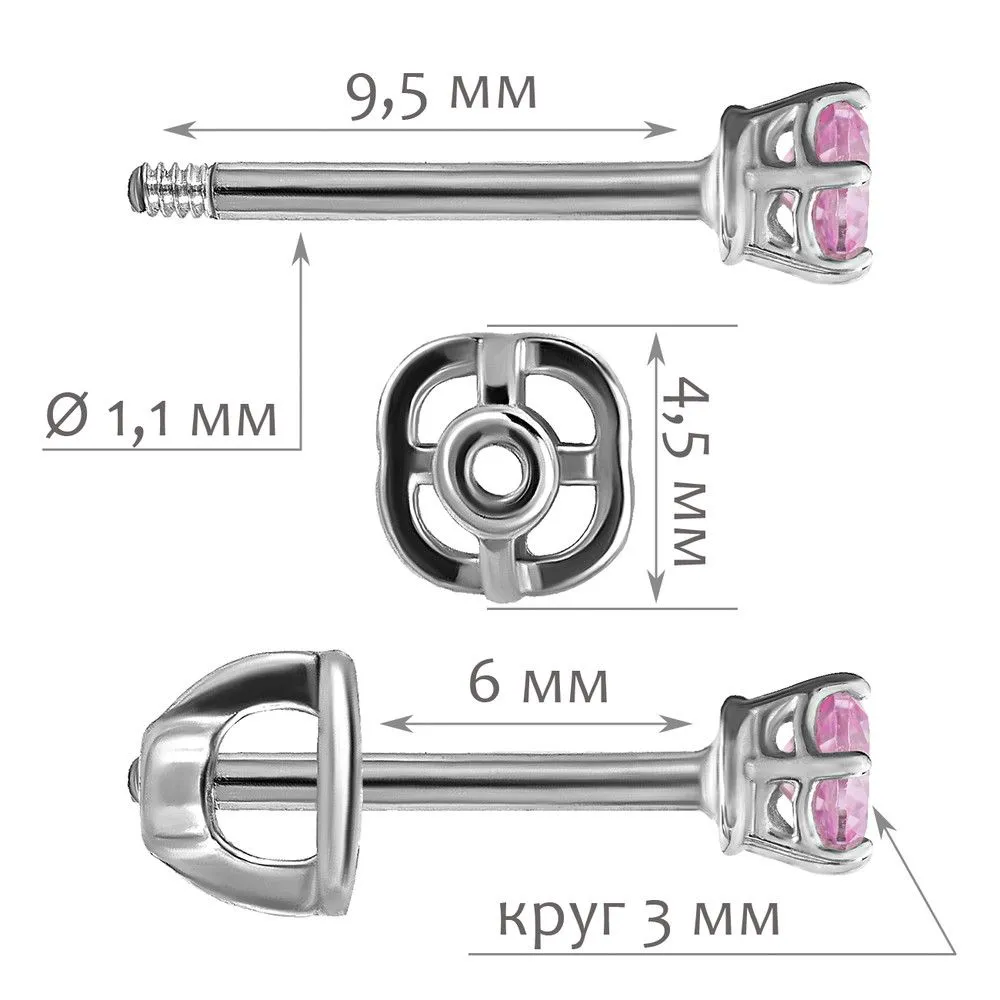 Серебряные серьги гвоздики (пусеты) с нанокристаллом, цвет розовый, покрытие Палладий. Средний вес украшения с камнями 0.6 гр. Размер главного камня: круг 3 мм. Нанокристалл - синтезированный ювелирный нанокристалл, превосходящий по блеску, преломлению света, твердости, плотности простой фианит. Все изделия собственного производства и имеют гарантию 12 месяцев. Арт. 8233PD.