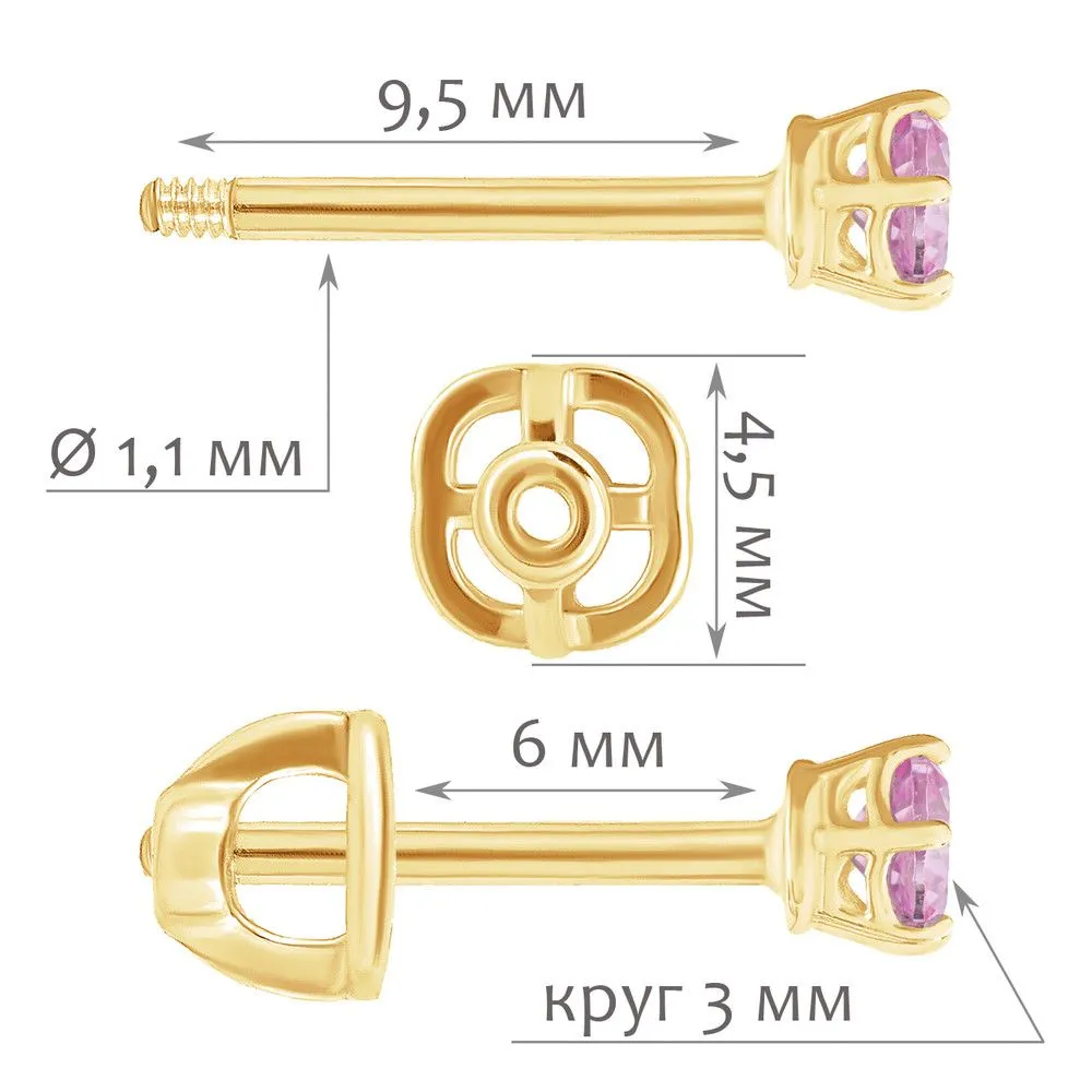 Серебряные серьги гвоздики (пусеты) с нанокристаллом, цвет розовый, покрытие Желтое Золото. Средний вес украшения с камнями 0.6 гр. Размер главного камня: круг 3 мм. Нанокристалл - синтезированный ювелирный нанокристалл, превосходящий по блеску, преломлению света, твердости, плотности простой фианит. Все изделия собственного производства и имеют гарантию 12 месяцев. Арт. 8233YG.