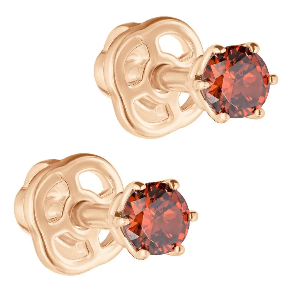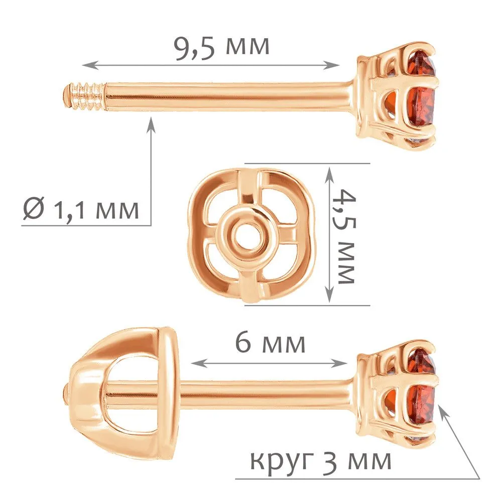 Серебряные серьги гвоздики (пусеты) с нанокристаллом, цвет красный, покрытие Красное Золото. Средний вес украшения с камнями 0.6 гр. Размер главного камня: круг 3 мм. Нанокристалл - синтезированный ювелирный нанокристалл, превосходящий по блеску, преломлению света, твердости, плотности простой фианит. Все изделия собственного производства и имеют гарантию 12 месяцев. Арт. 8238RG.